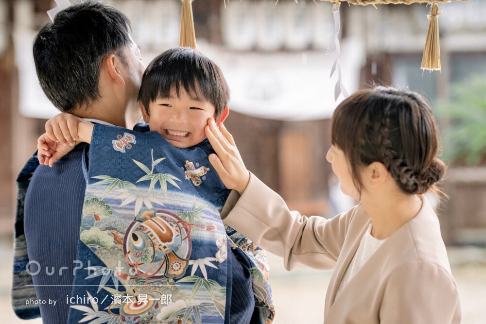 「楽しい写真撮影」家族揃って和装!笑顔の可愛い女の子の七五三の撮影