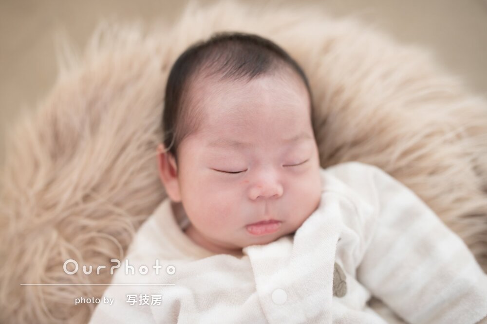 「いい思い出に」ぐっすり眠っている寝顔が可愛いニューボーンフォト撮影