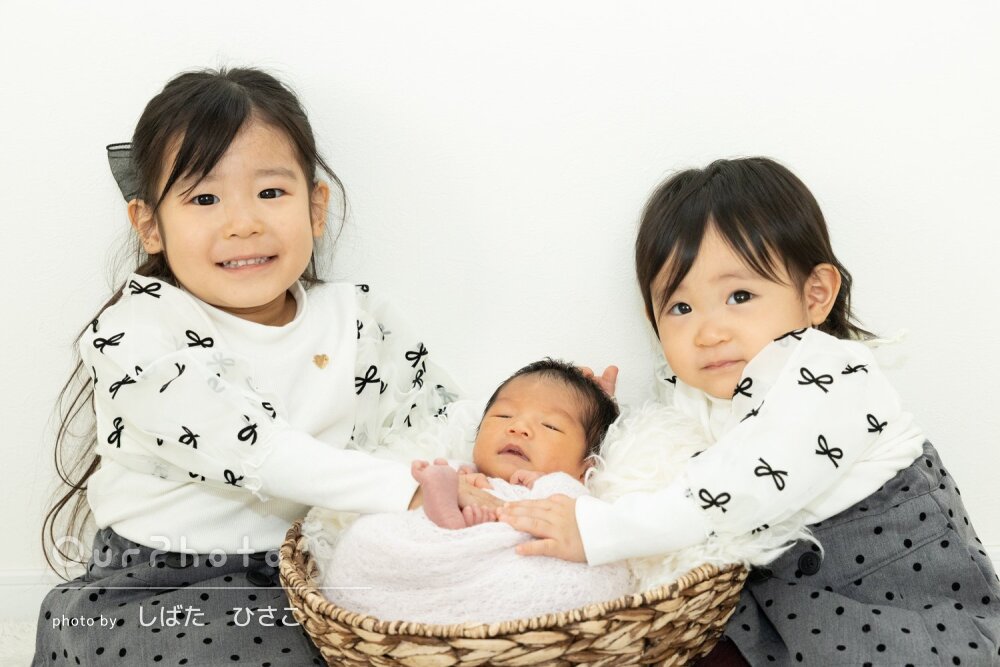 ご家族写真やごきょうだい写真、かごや黒背景なども残していただけます。