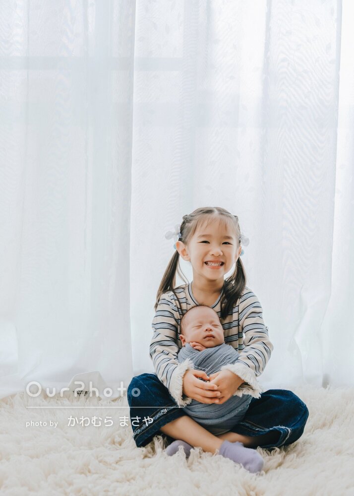 赤ちゃんの寝かしつけから、上の子の対応まで、カメラマンさん達の暖かさに触れました。できあがった写真はこれ以上ないほどキレイで、また機会がありましたらお願いしたいと思います。