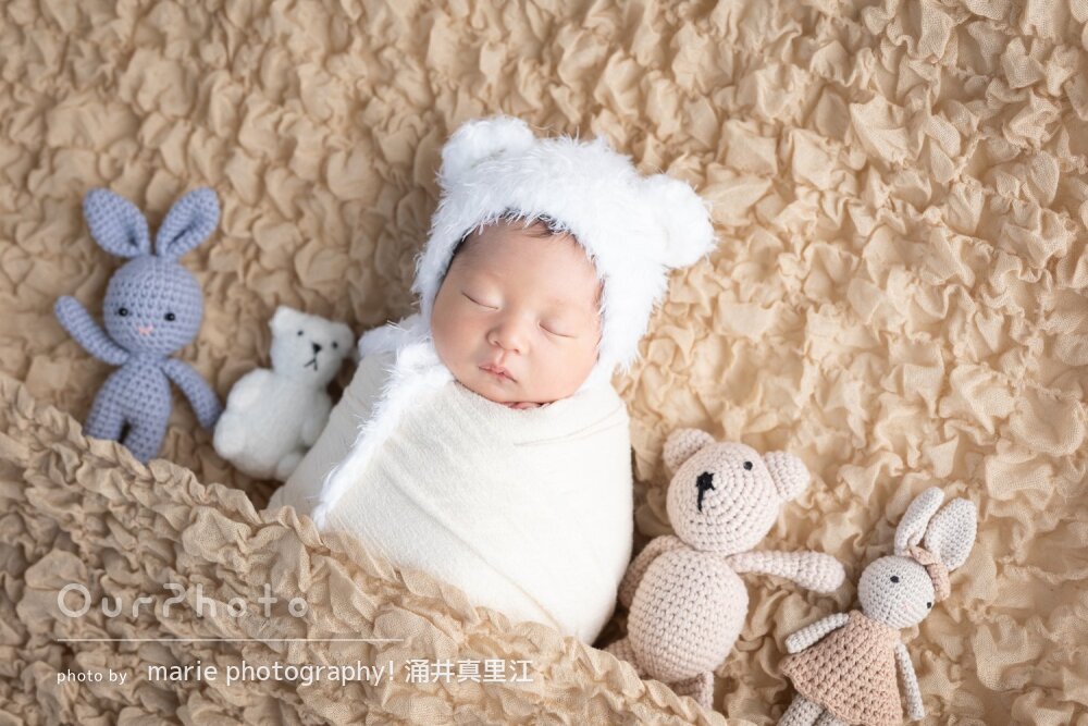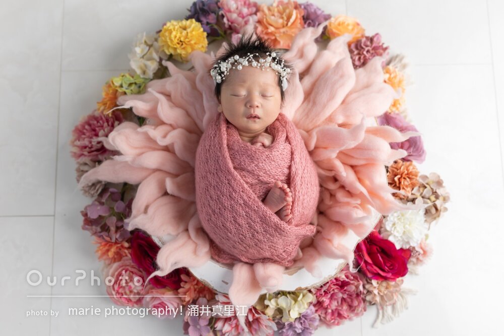 ※事前のご希望の色味などを伺って当日小物やおくるみをご用意いたします。