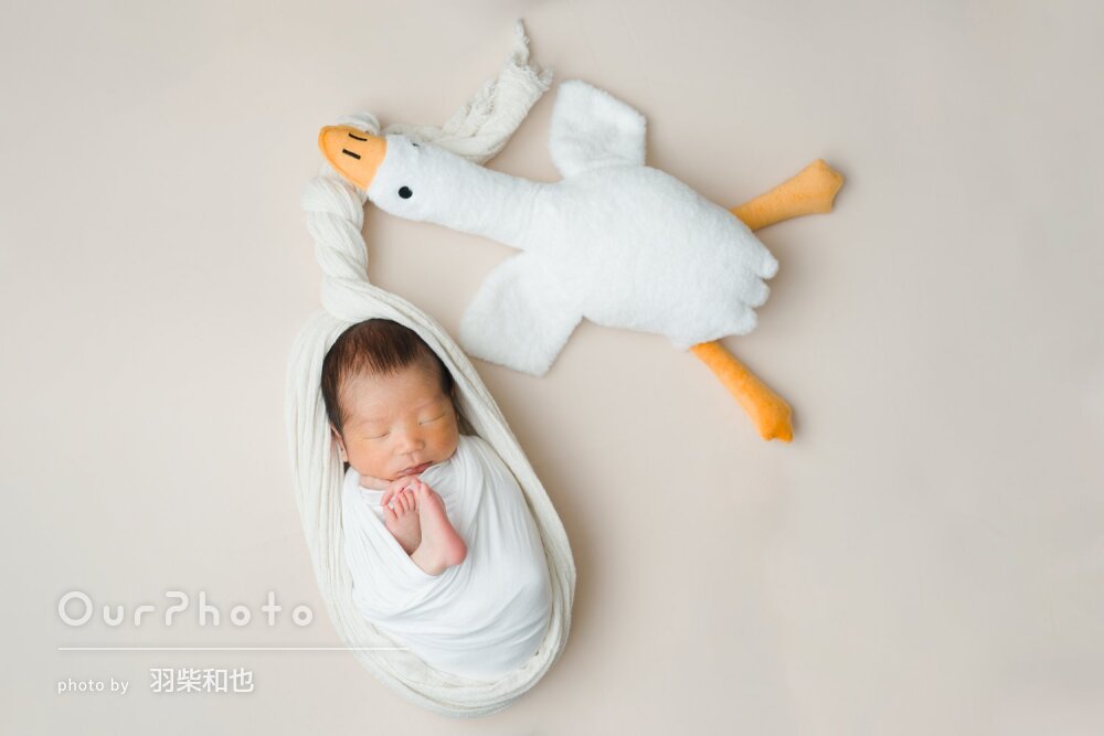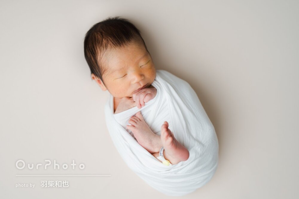 おくるみが巻けない場合もニューボーンフォト風には