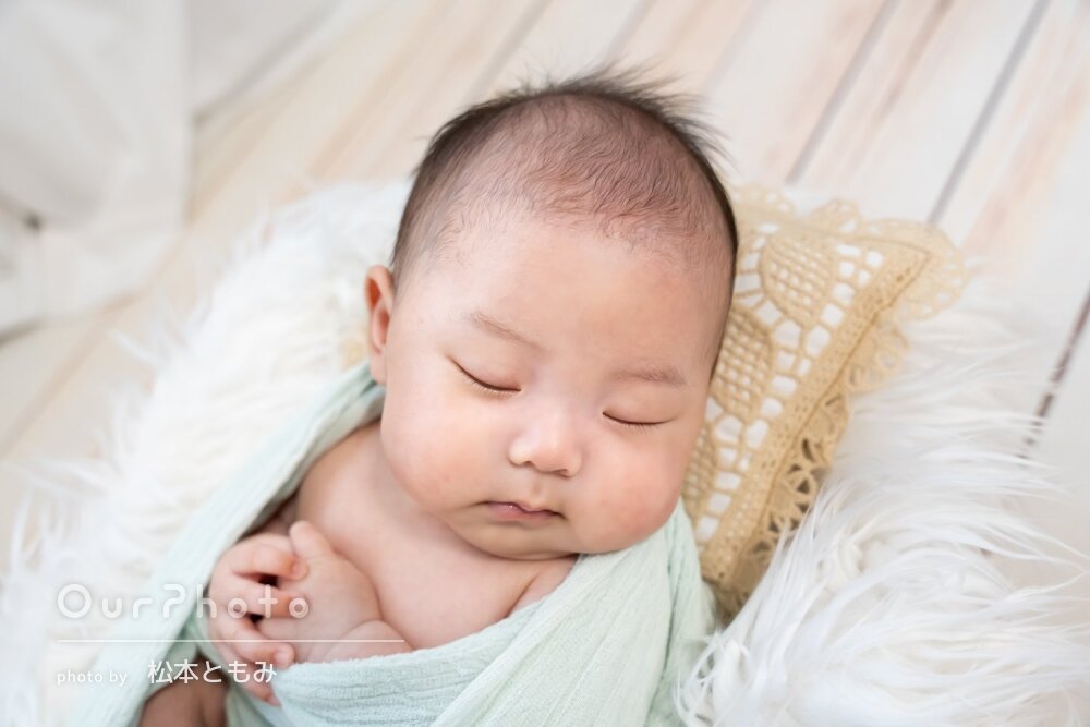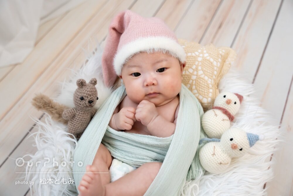 赤ちゃんの発達状況に合わせて、おくるみ撮影が可能です。