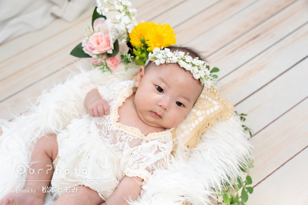 通常2.3週間までの撮影と言われるニューボーンフォトですが、理学療法士で赤ちゃんの身体の専門家です。
