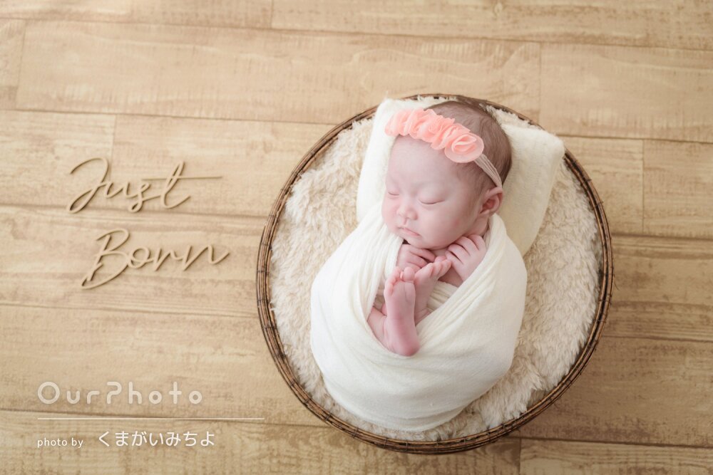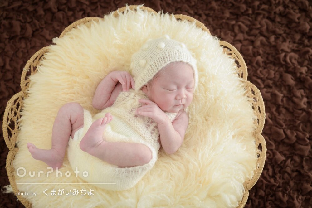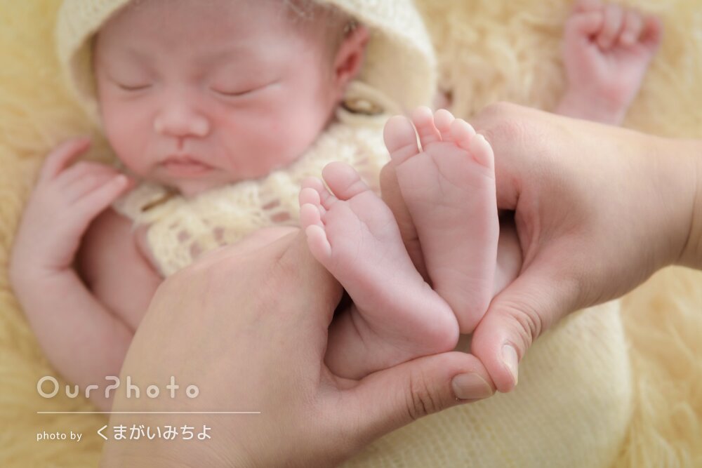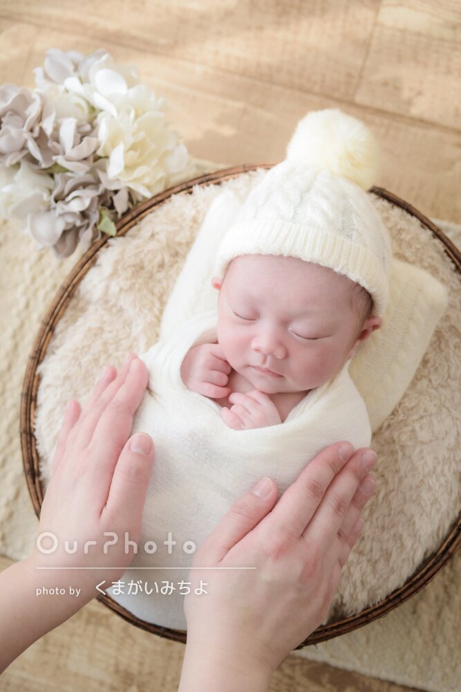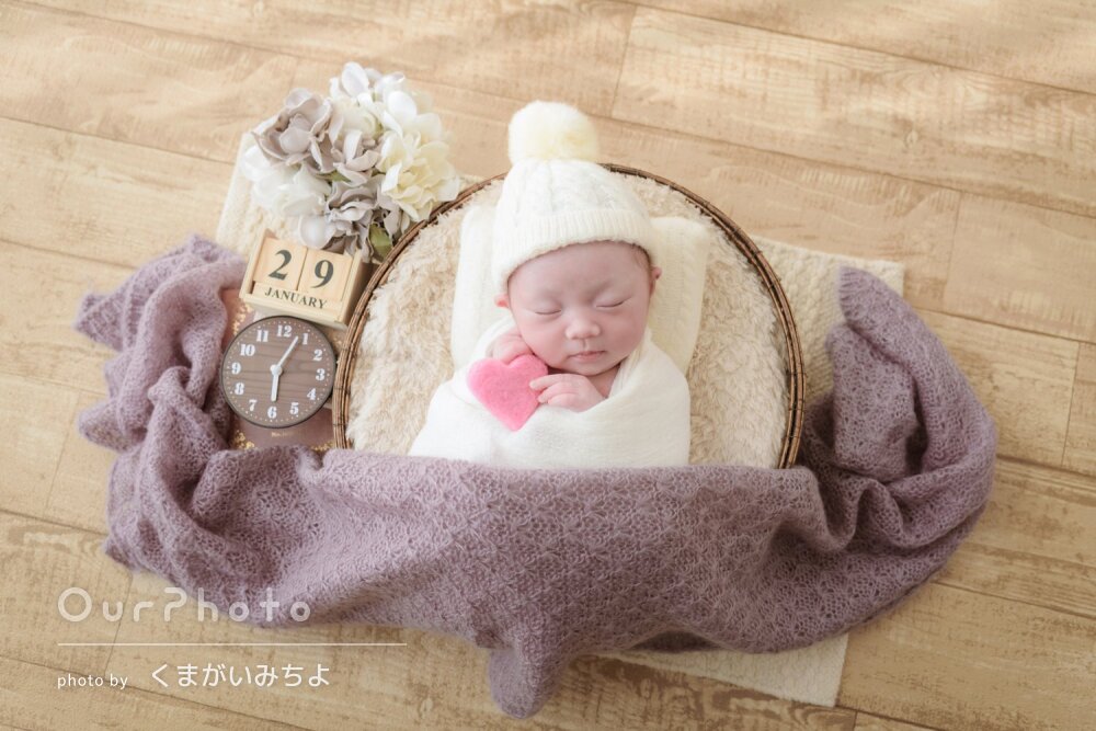 基本的には、ニューボーンの小道具を持ち込んでのお客様のご自宅へ出張撮影をさせていただきます。