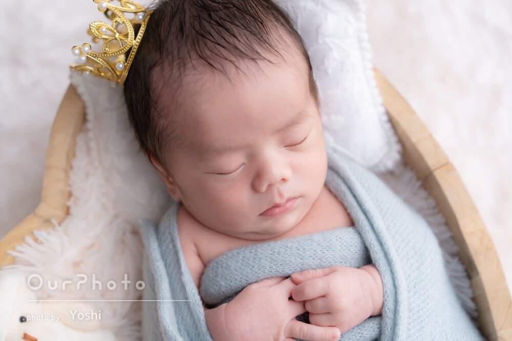 ニューボーンフォトに関してはライティングセット、機材準備、寝かしつけ、お包みなどで20分前後はお時間がかかります。
