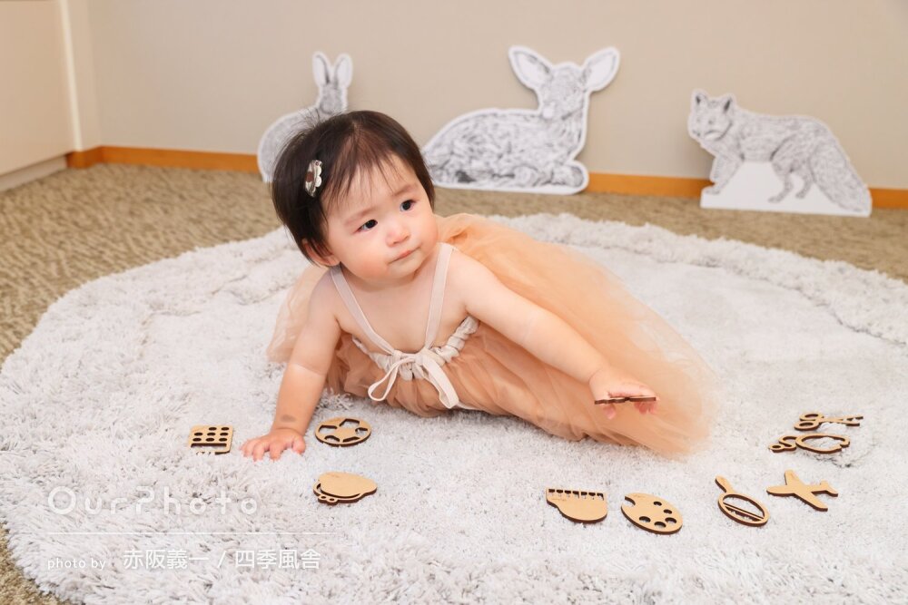 1歳バースデーの写真撮影ありがとうございました!ぐずぐずの時間も多くできあがりの写真が大丈夫かなと思っていましたがが、とてもよく撮れてる写真がたくさんありました!
