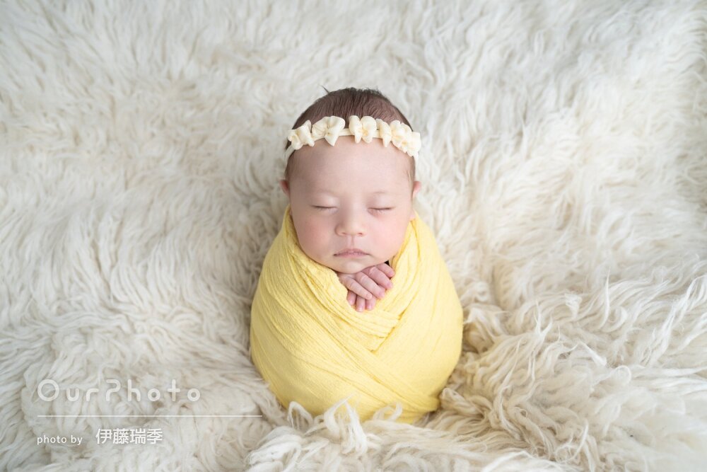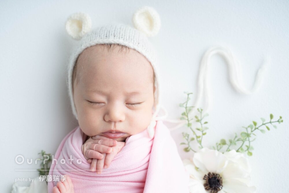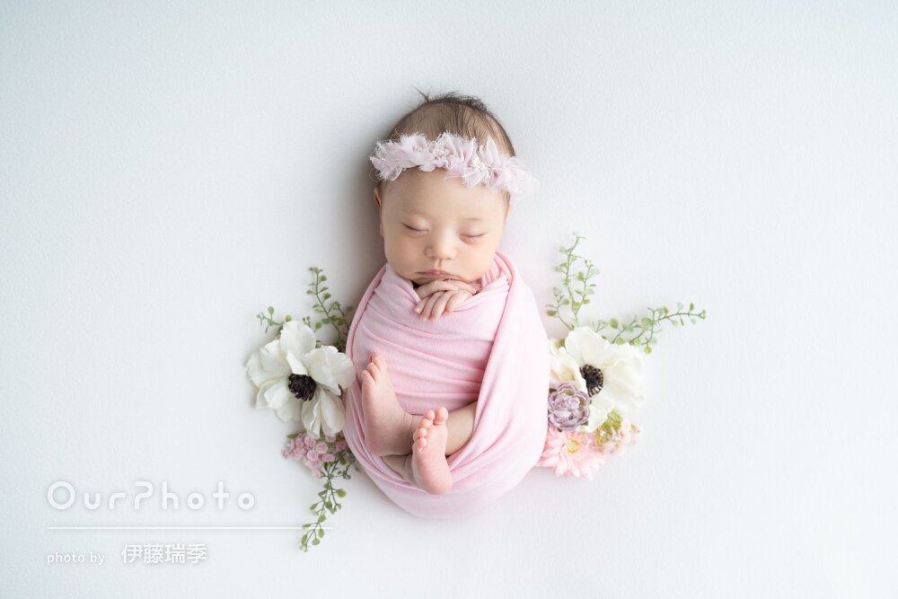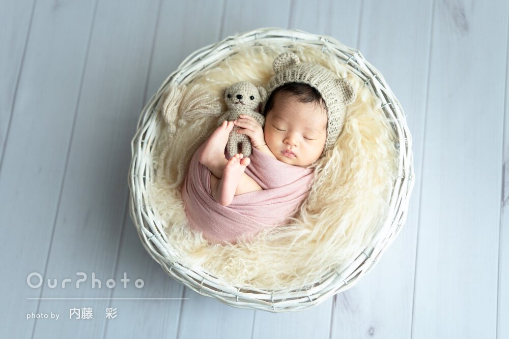 小物やおくるみの種類もとても多く、選ぶのに迷いましたがいくつか選択肢を出してくれるので素敵な写真になりとても嬉しかったです^_^