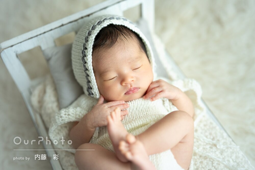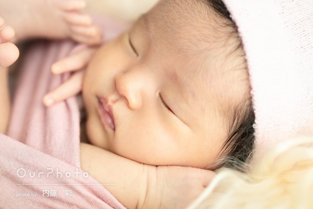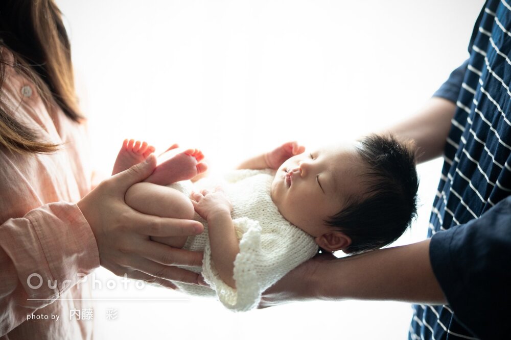 このたびはニューボーンフォトを撮っていただき、ありがとうございました!撮影をお願いした日程の頃は連日泣いている時間が多すぎて無事にできるのか心配しておりましたが、内藤さんのあやし方、寝かしつけ方がとても上手でスムーズに撮影していただけました。