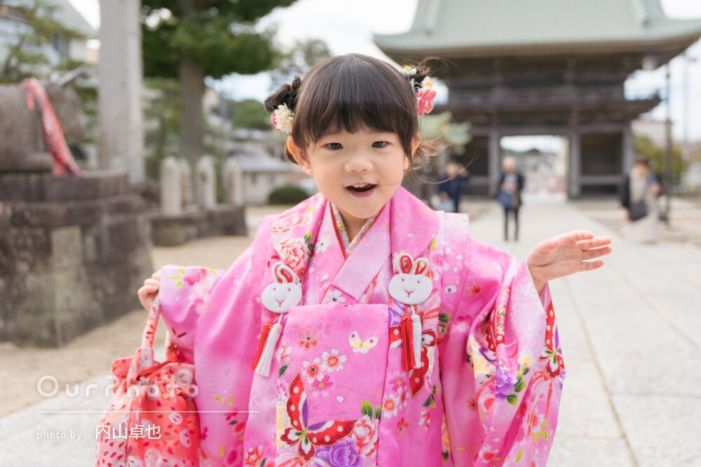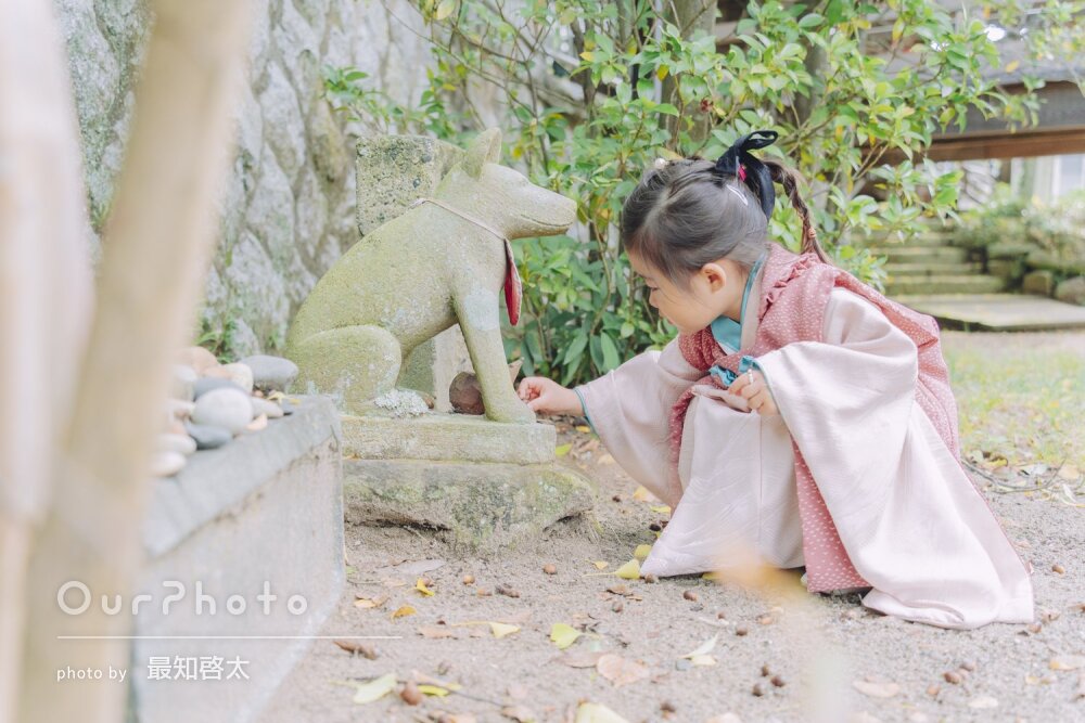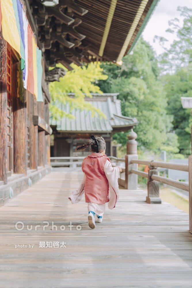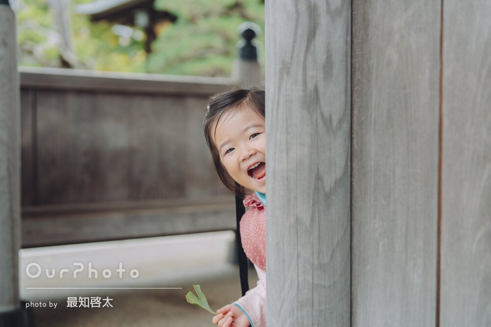 活発な女の子なので、屋外のお詣りの撮影で、とっても楽しんでいました!