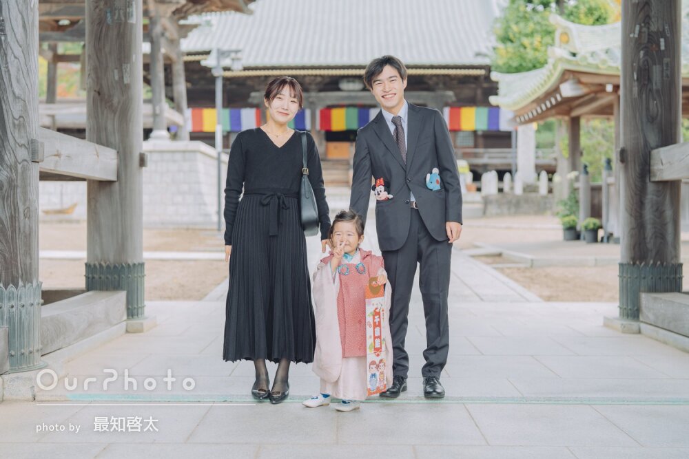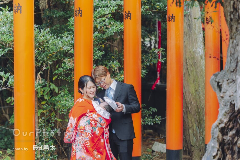 この度は素敵な写真を撮っていただきありがとうございました。ふざけがち、大笑いしがちな私たちを上手く切り取っていただいた自然なカットもありがたく、大変思い出に残るお宮参りとなりました。