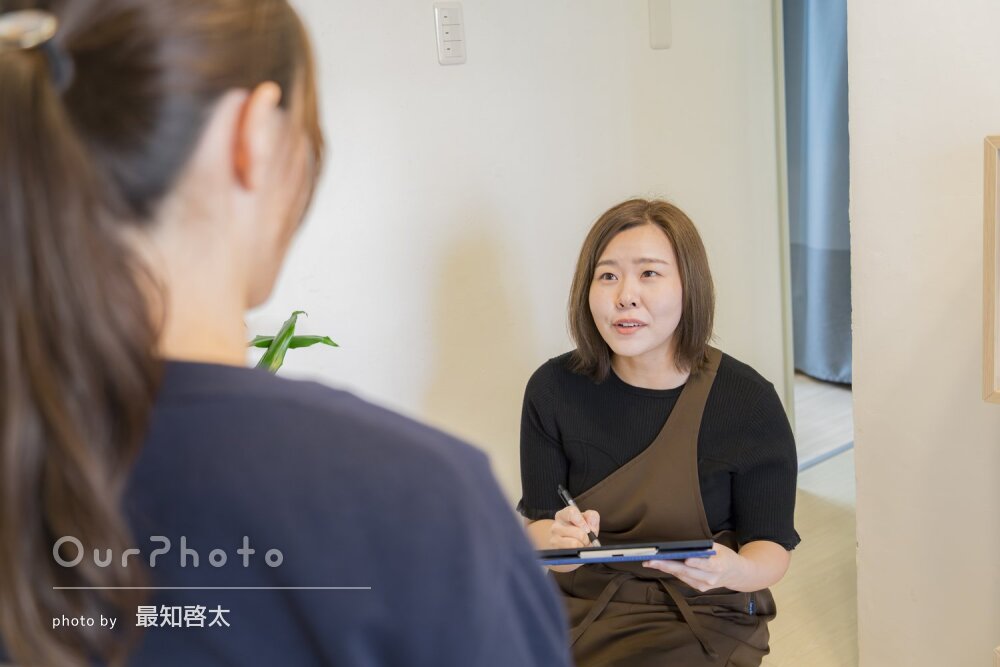 撮影当日は撮影場所を事前に下見していただいていたおかげで、撮影が非常にスムーズに進行し、有意義な時間を過ごせました。小さい子どもが撮影中にぐずってしまってご迷惑をお掛けする場面もありましたが、穏やかに優しく対応していただき大変助かりました。