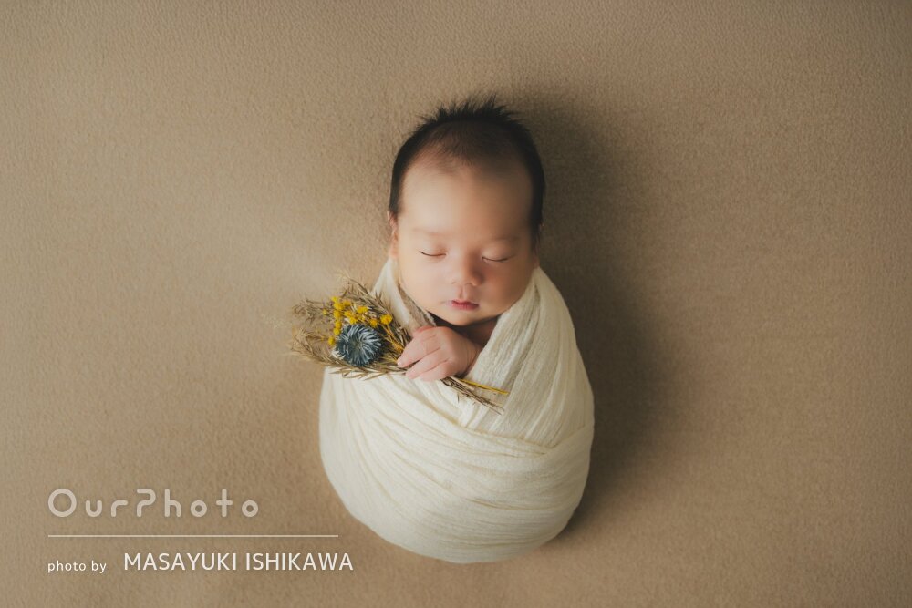 産後の問い合わせでも快く対応していただきました。スケジュールの都合上、ニューボーンフォトとして推奨されている生後10〜14日を過ぎての撮影となってしまいましたが、できる限りのポーズでとても可愛く撮影してくださいました。スタジオではなくてもここまで素敵に撮影できることに驚きました。本当にありがとうございました!