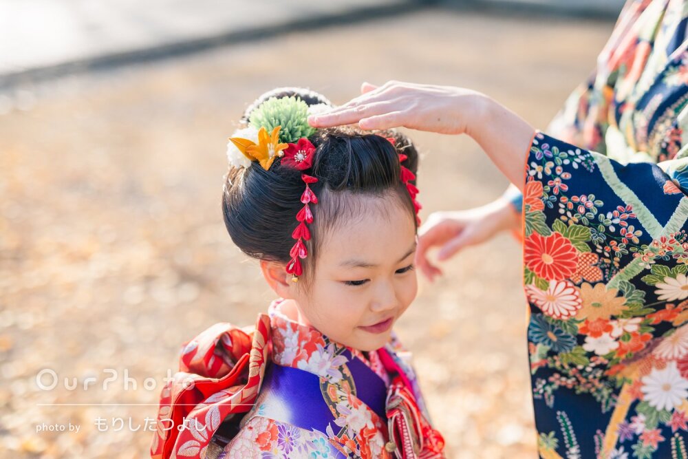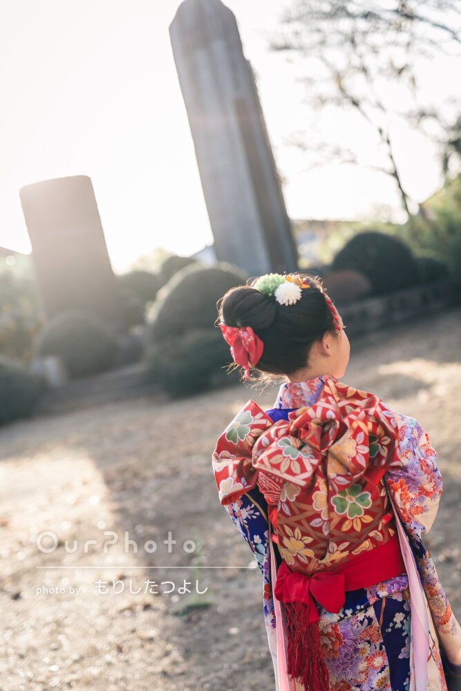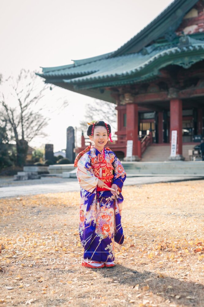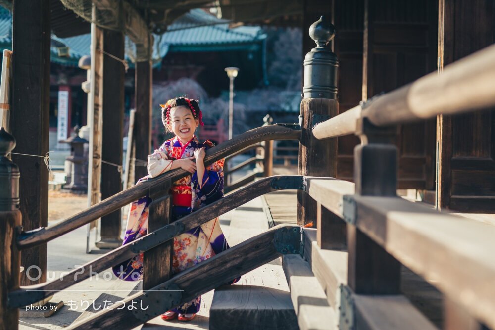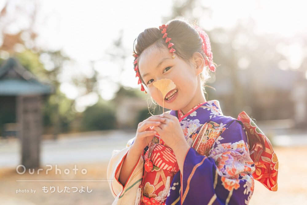少し遅れての七五三撮影をお願いしました。寒い中の撮影でしたが、子供の気分を盛り上げながら本当に素晴らしい写真をたくさん撮ってくださいました。「こんなふうに撮りましょうか」「ここも素敵ですね」と、当初お願いしていた構図プラスで色々ご提案いただき、我々もワクワクしながらの撮影となりました。