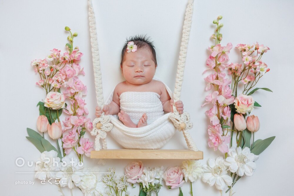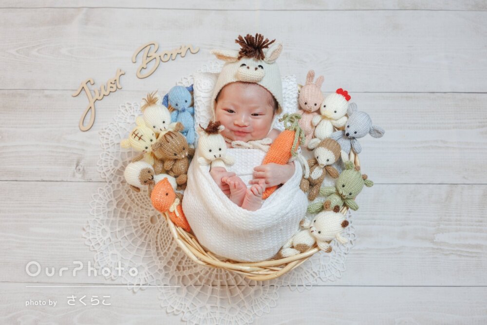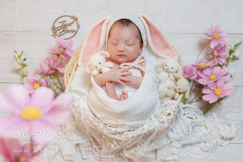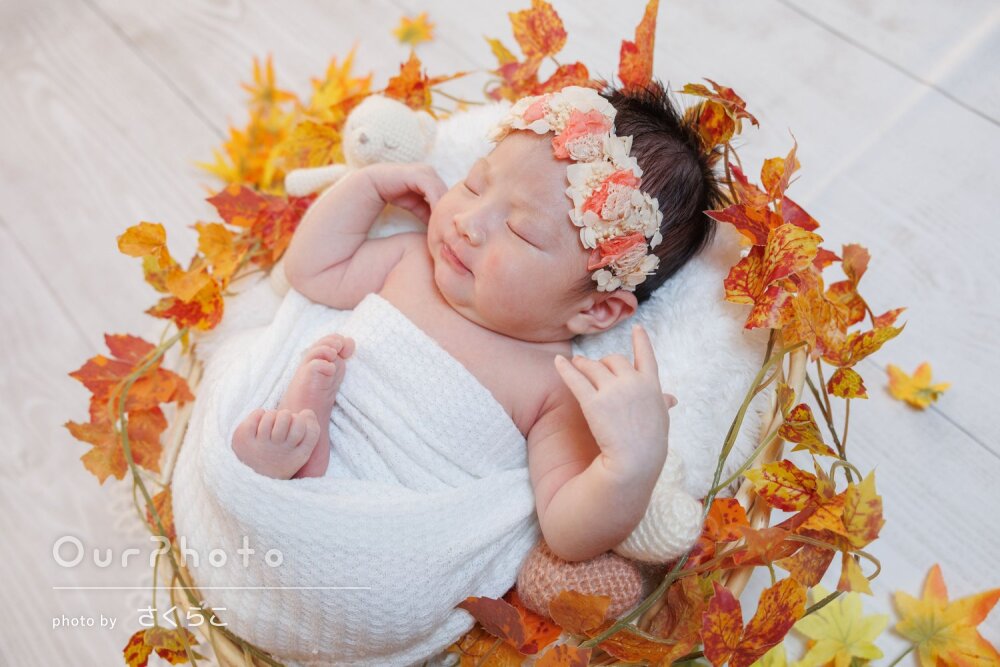 手際よくいろんなパターンで撮影してくださり、赤ちゃんがぐっすり寝ている間に可愛い写真を撮影していただけました。