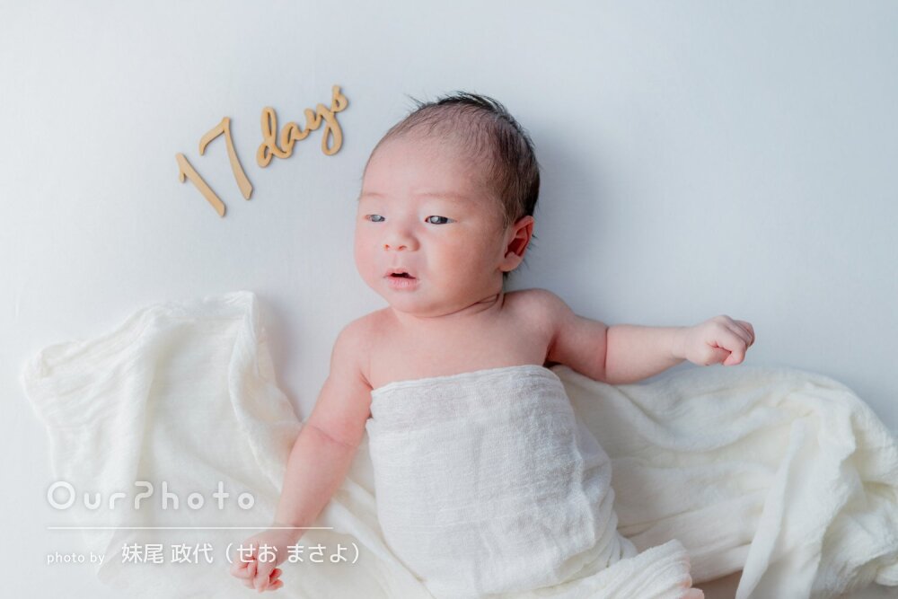 ぐずり気味だったのですが、自然な表情を残すことができ、写真の仕上がりも大満足です。