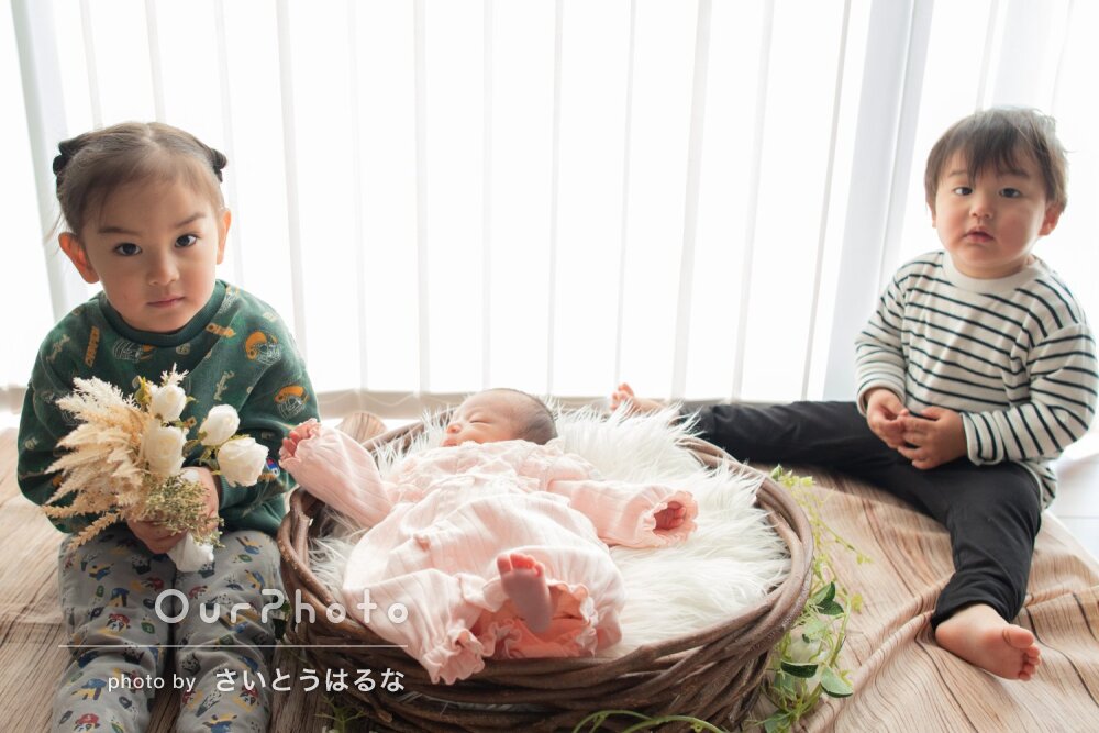 撮影でも、上の子と沢山会話していただいたので赤ちゃんとの兄妹撮影もうまくいき、とても嬉しかったです!