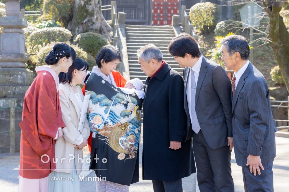 家族揃って(大人6人子ども2人)のお宮参りの撮影をお願いしました。