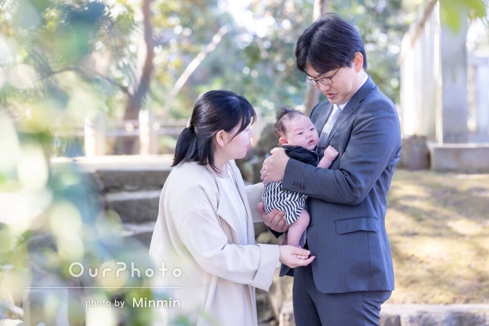 七五三の写真を撮っていただきました。ゆったりとした雰囲気で撮影ができました。何気ない表情をたくさん撮っていただきありがとうございます。とても優しい、柔らかな雰囲気の方でした!子供が人見知りなので、すぐに慣れて助かりました。コロナ禍から、なかなか、両家集まることがなかったので、とてもいい記念になりました。今回は撮影の場所を相談しながらしていただきました。優柔不断な私達だったので、ここで撮りましょう、と提案があると、ありがたかったなと思いました。事前の打ち合わせの時に話しておけばよかったなと思いました。