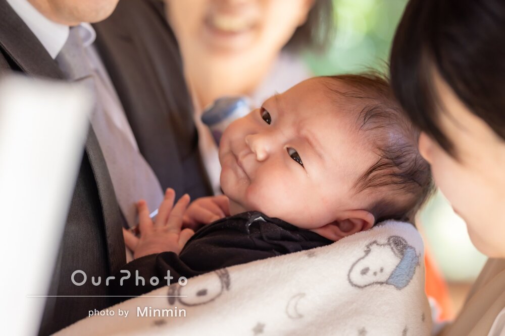 時々オフショットというか、移動しながらや祝い着の手直しをしている間に抱っこされた子どものアップの写真なども撮っていただけたのは嬉しかったです。