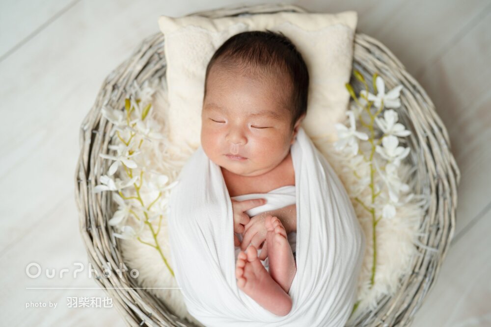 初めてのニューボーンフォトで少し緊張していましたが、羽柴さんが終始和やかな雰囲気を作ってくださり、自然とリラックスして撮影に臨むことができました。
