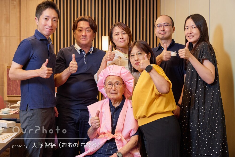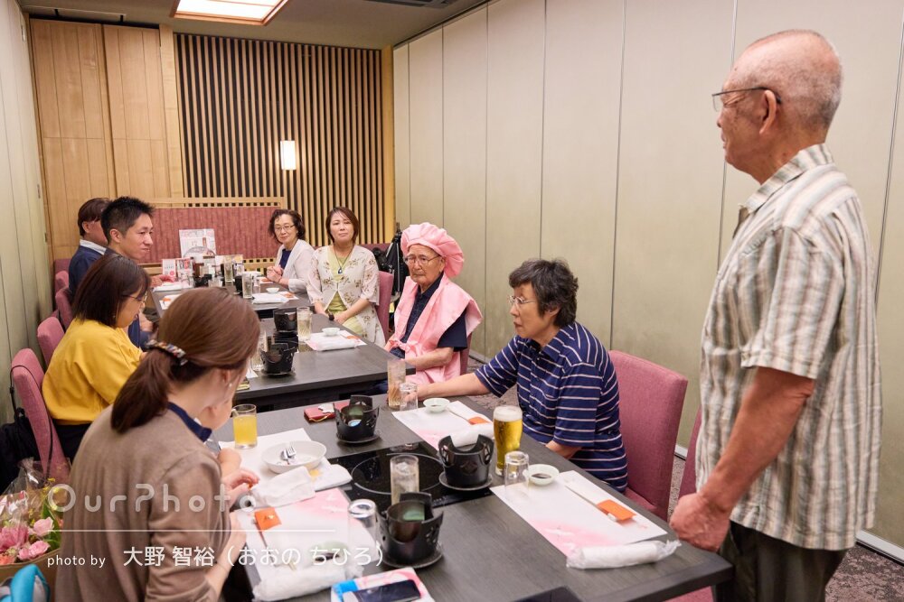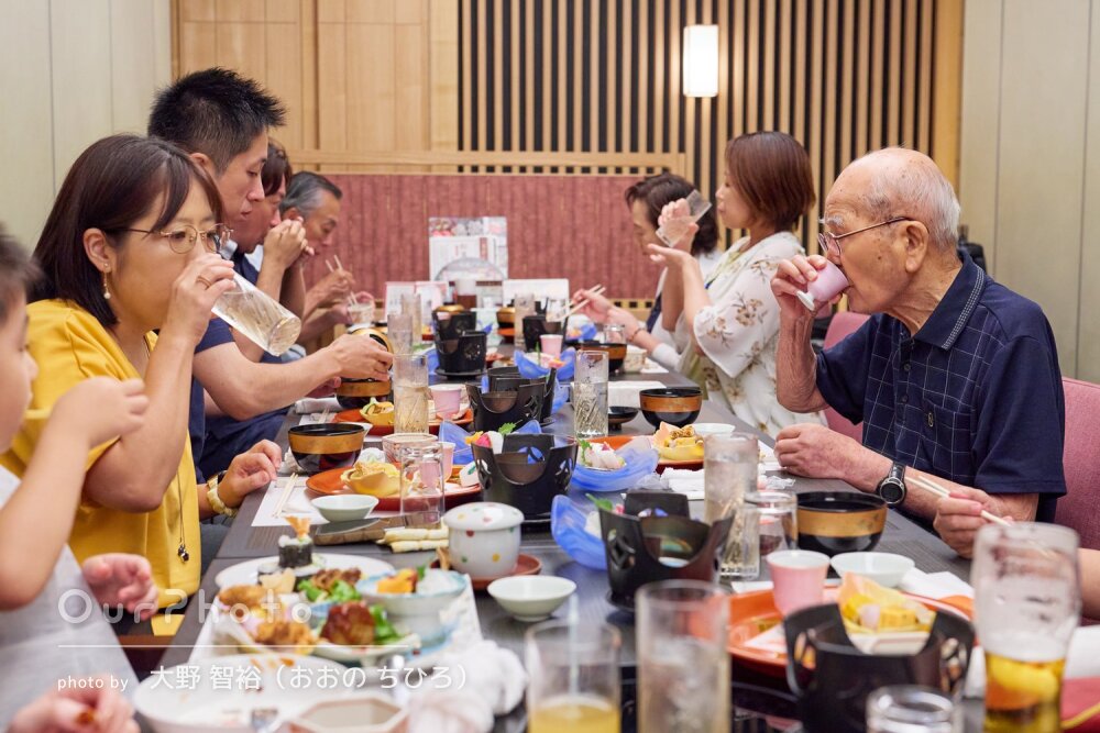 祖父の100歳のお祝いで食事会を開催するのでその自然な様子を撮影してほしい、というリクエストをさせていただきました。限られたスペースであまり動きなどは出せない中でしたが「こういう写真はどうですか?」というアイディアをたくさん出していただき、素敵な写真をいっぱい撮っていただくことができました。「その発想はなかった…!」と驚くことも。本当によい記録を残すことができ、大変感謝しております!