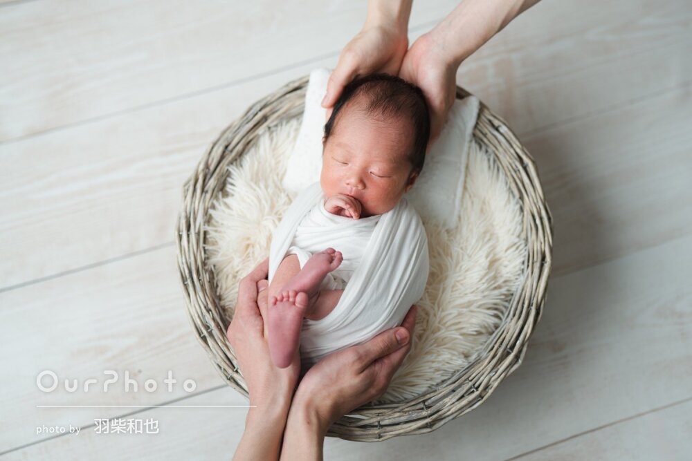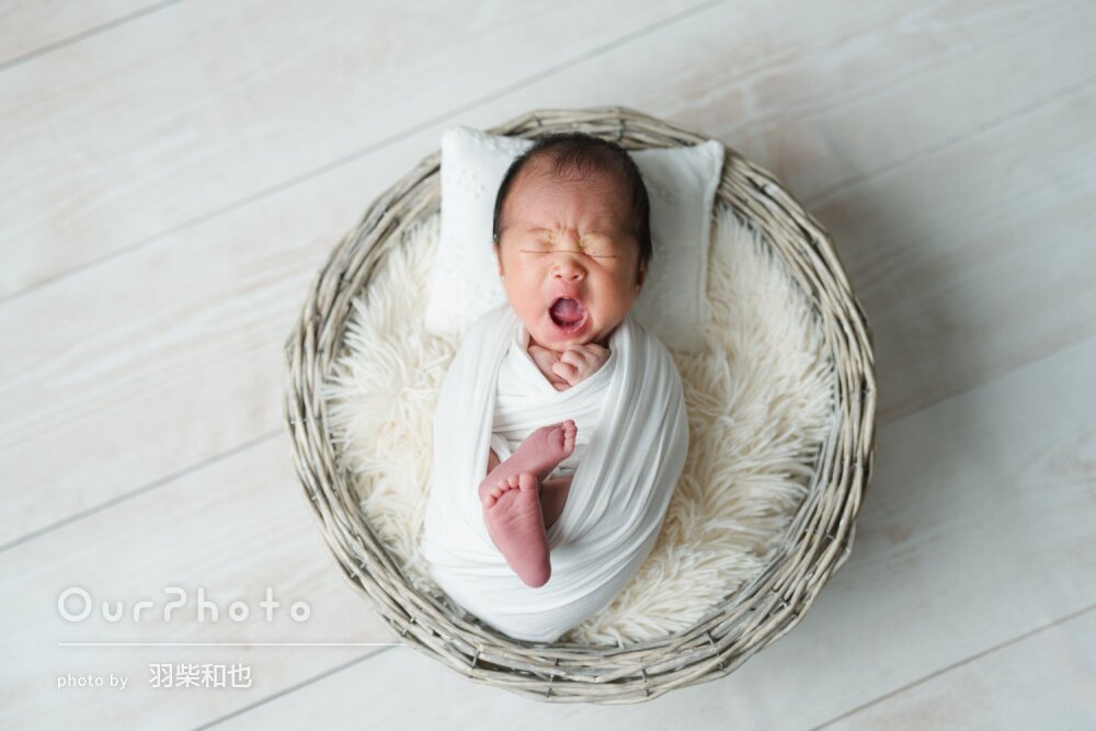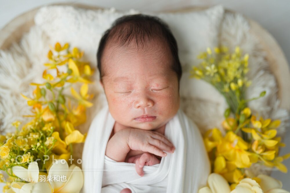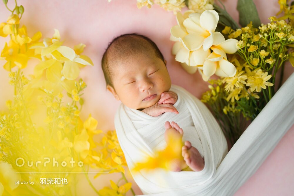 おくるみがとれてしまい、丁寧に何回も直して撮って下さいました。