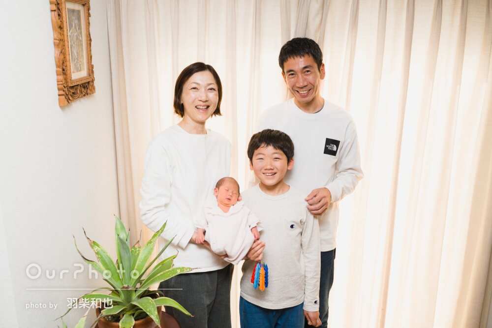 初めての出張撮影で赤ちゃんも小さかったので不安でしたが、和やかな雰囲気で長男も楽しそうで安心してお任せ出来ました。