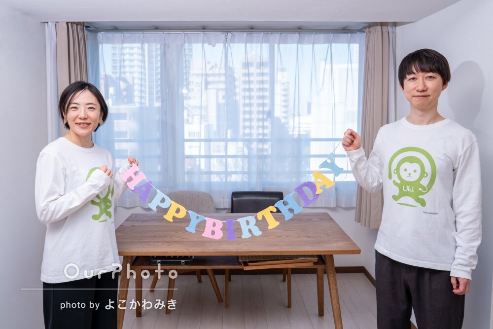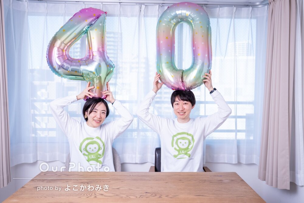 妻の誕生日祝いの写真と自分の仕事用の写真を一緒に撮ってもらいました。
