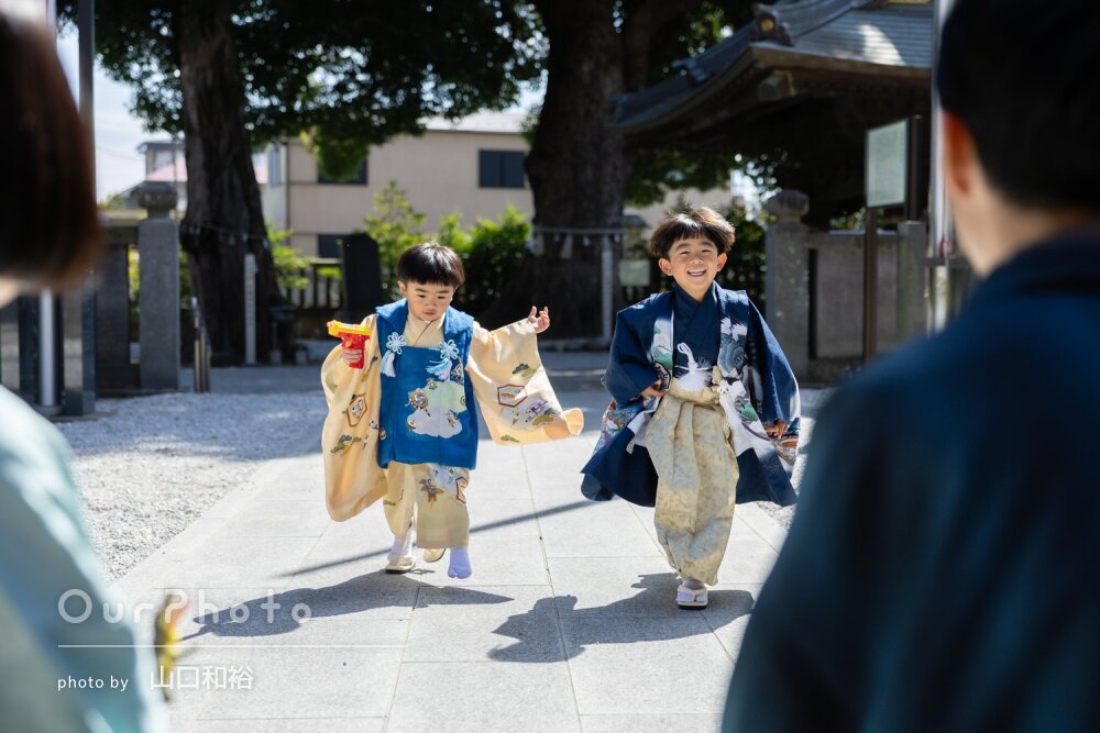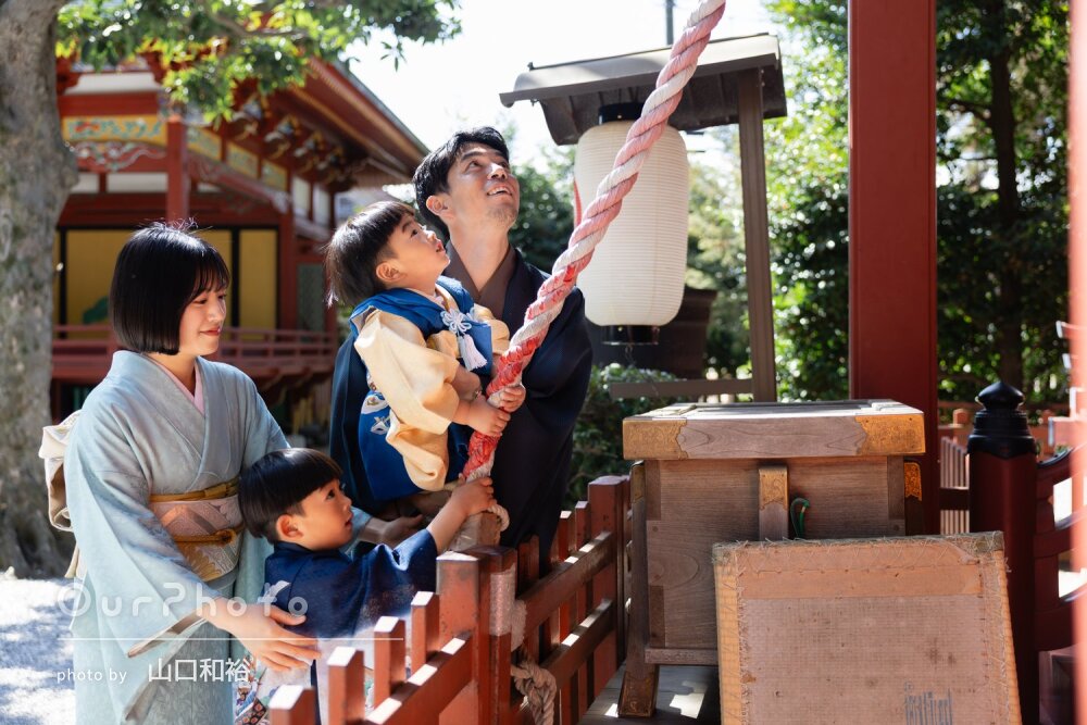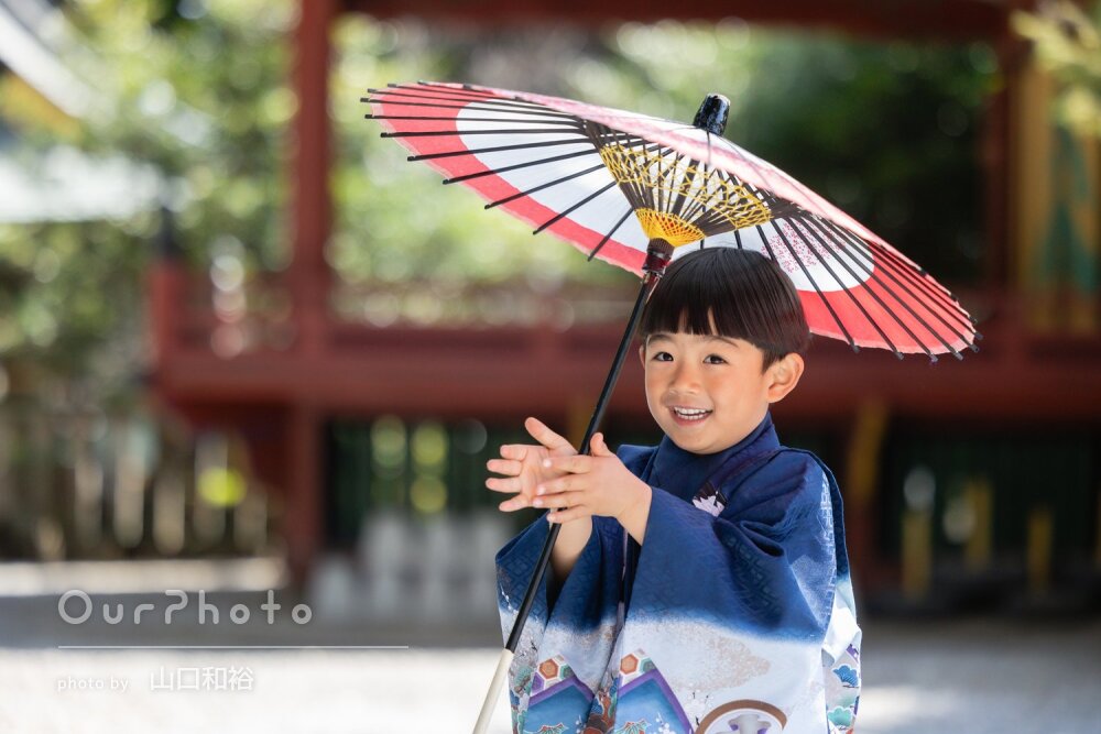 神社の雰囲気や緑を活かした撮影もとても素敵で、家族の自然な姿をきれいに残していただけました。撮影場所や構図もその場で提案してくださるので、初めてのロケーション撮影でも安心して臨めました。