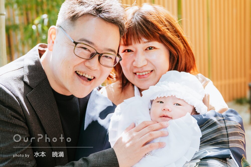 仕上がった写真はどれも温かい雰囲気で、大切なお宮参りの思い出を素敵に残すことができて家族みんなとても喜んでいます。