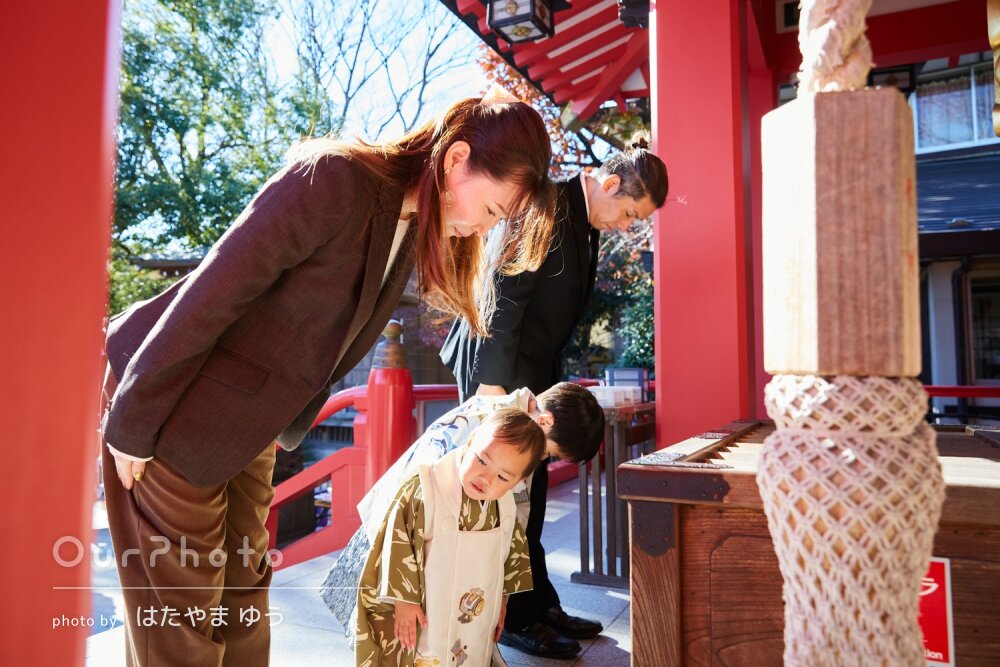 七五三で神社で撮影していただきました。こどもへの接し方がお上手で、うちの3歳男児は開始早々から懐き始めていました☺️