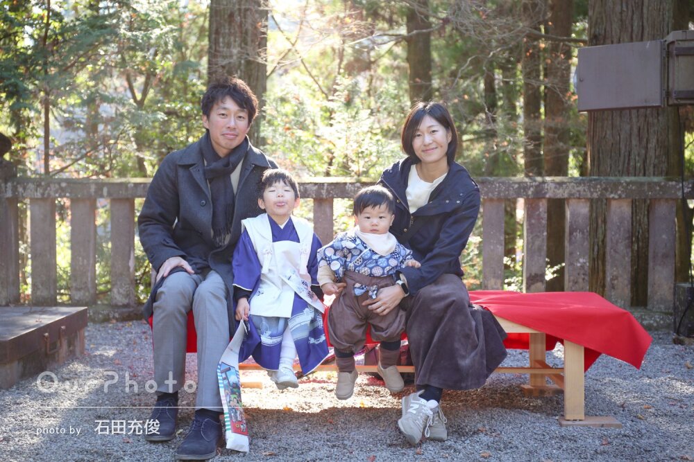 男児2人のかなりにぎやか(ドタバタ)な撮影にもかかわらず、長男次男それぞれの単体、兄弟フォト、家族フォトと着替えもしながらたくさんのシチュエーションで撮っていただけました。松原さんのお優しい言葉かけで子どもたちも緊張せず笑顔で楽しい時間を過ごすことができました。