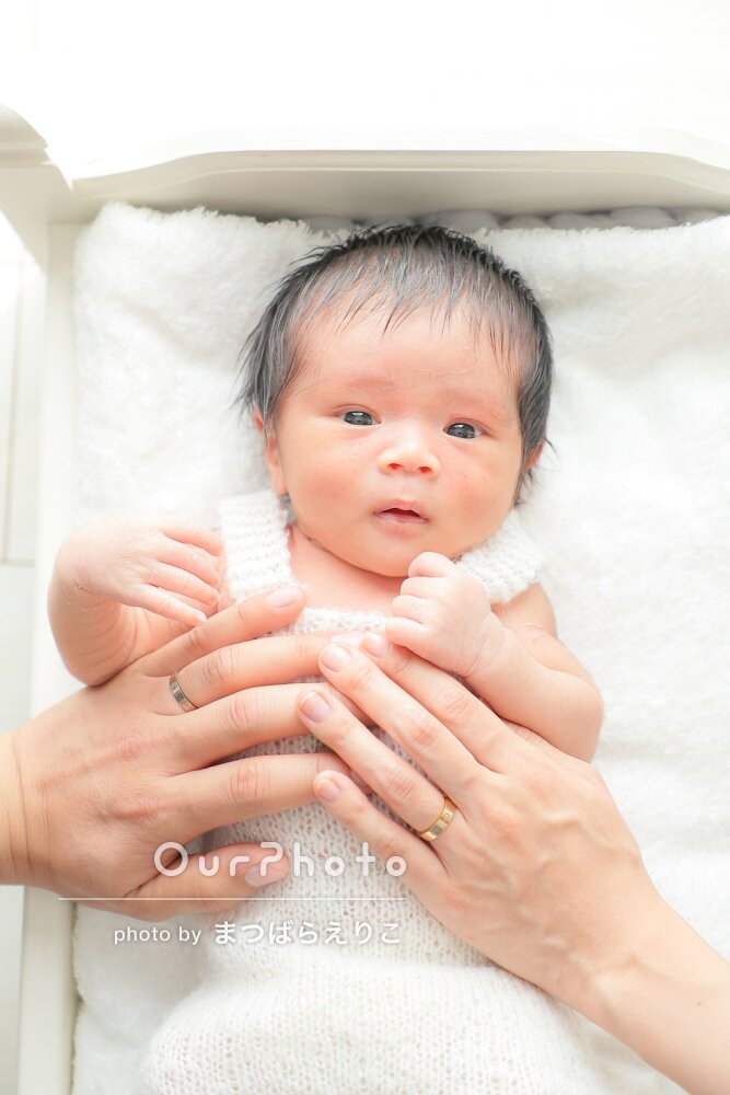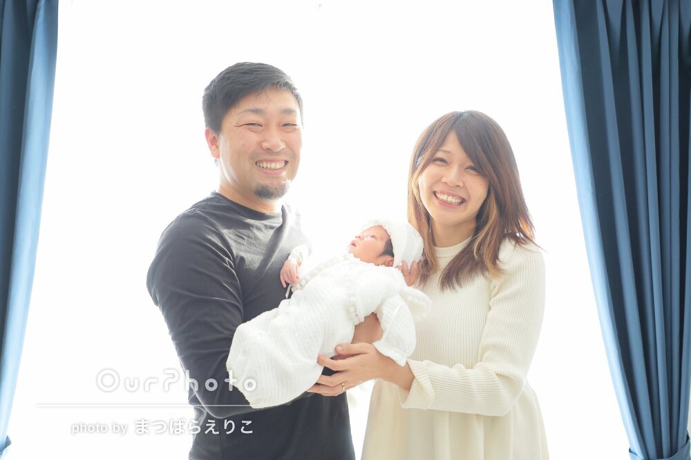 第一子ということでドキドキしながらのニューボーンフォトの依頼でしたが、子どもの状態を見ながらとても手際よく撮影いただきました!