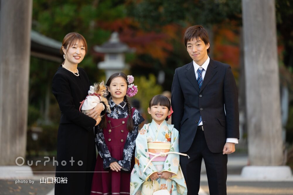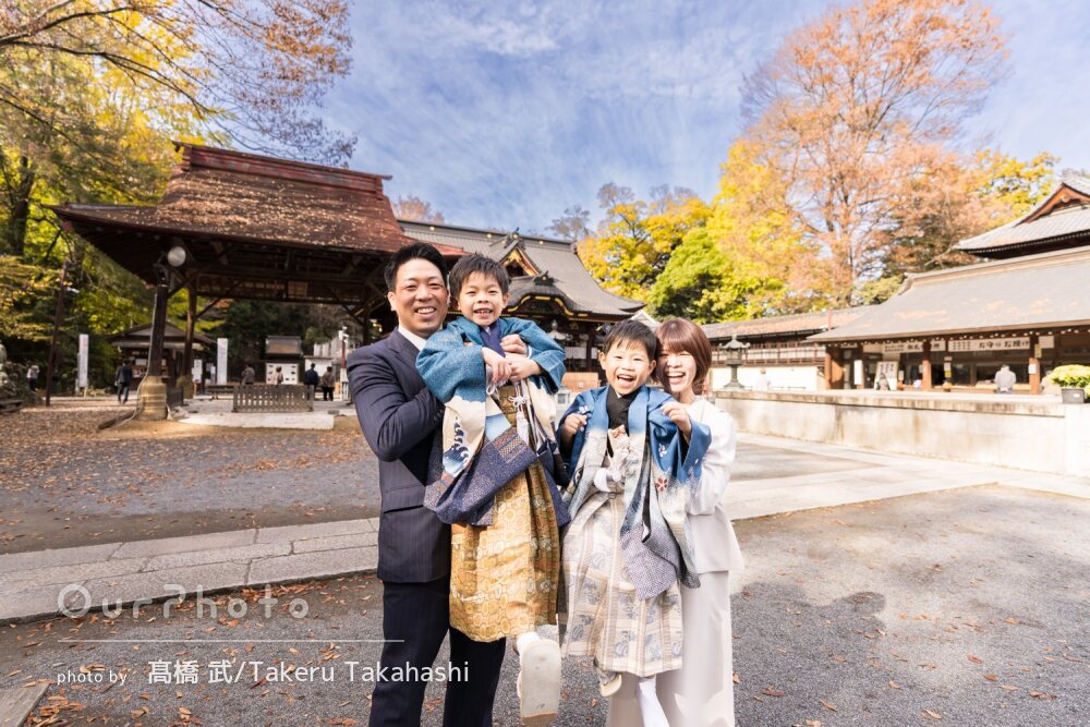 やんちゃな三兄弟の撮影で心配しておりましたが、子どもとの距離も縮めてくれ、子ども達が動き回る中、撮影をしてくださいました。賑わっている神社ですが、人通りが少ないスポットなどでも様々な場所で撮って頂きました。
