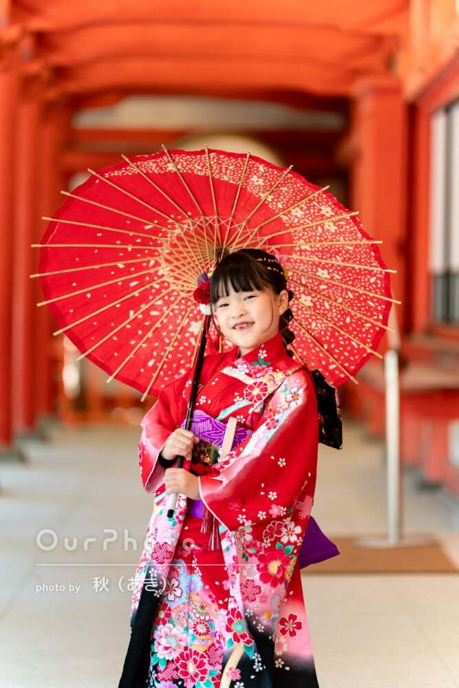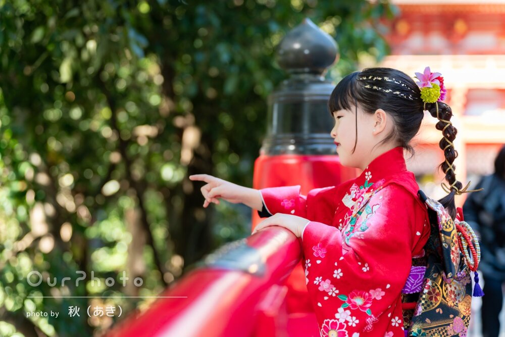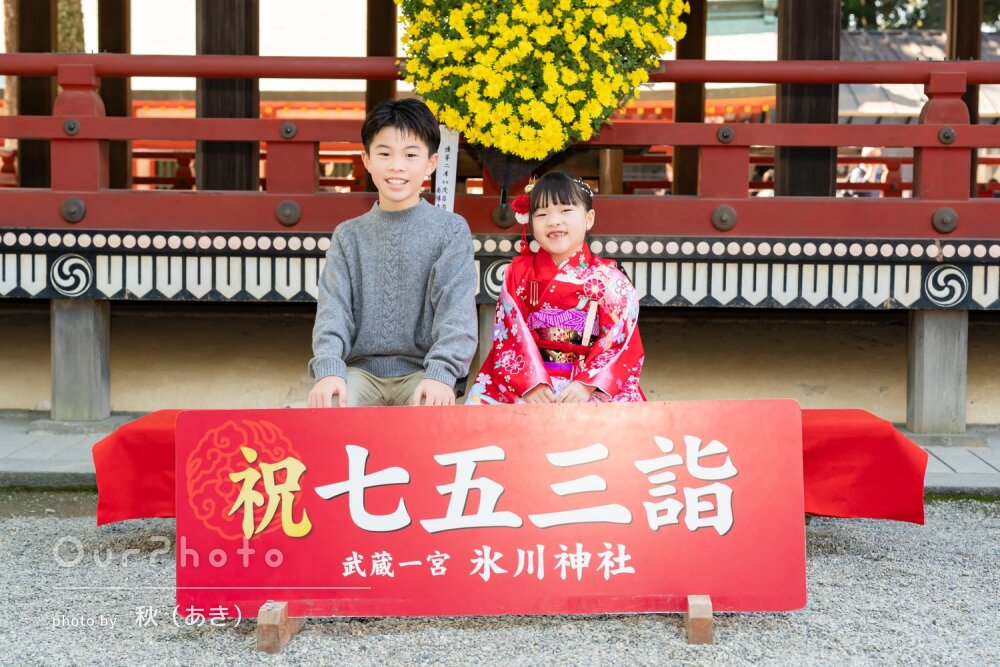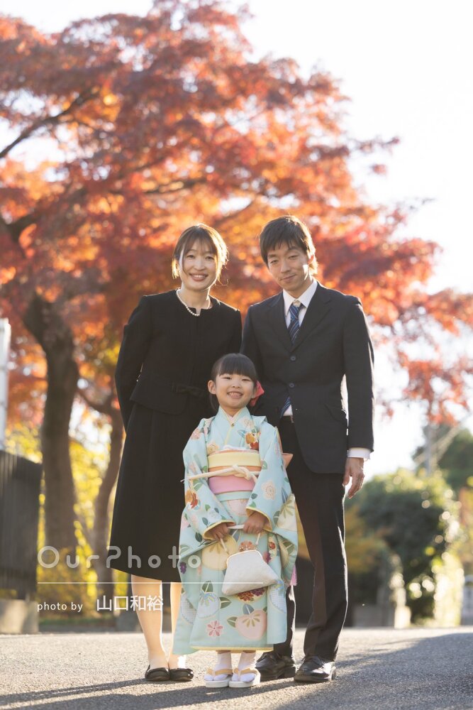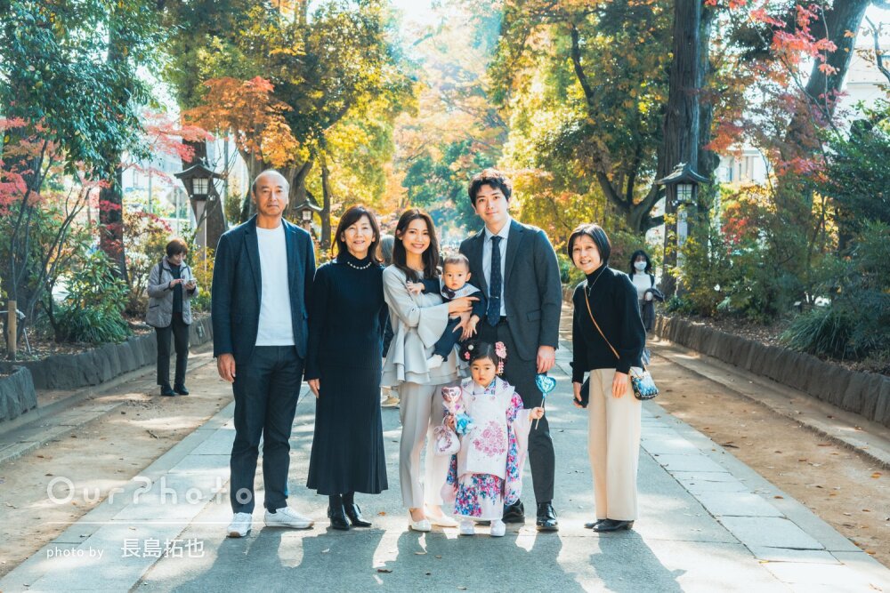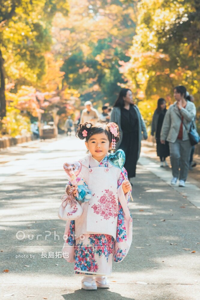 七五三シーズンの一番混雑している日にお願いしたせいもあり、混雑の中での撮影に双方で苦戦した時間もありましたが、届いた写真は色合いが美しく、さすがの仕上がりでした。