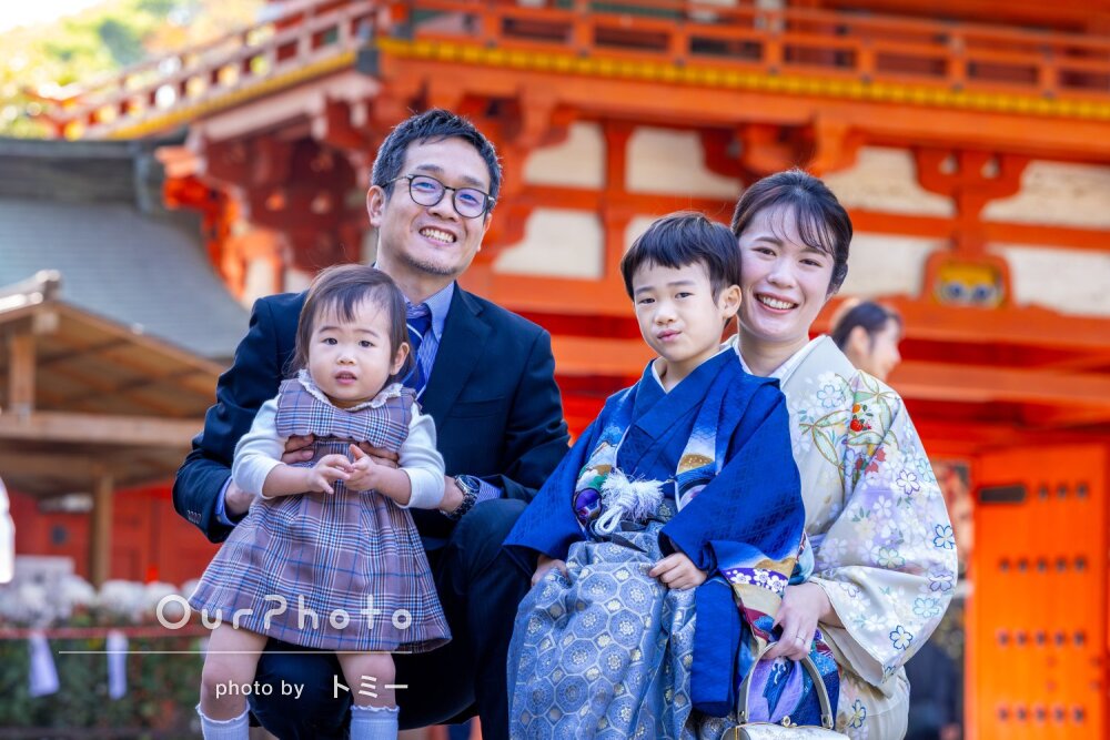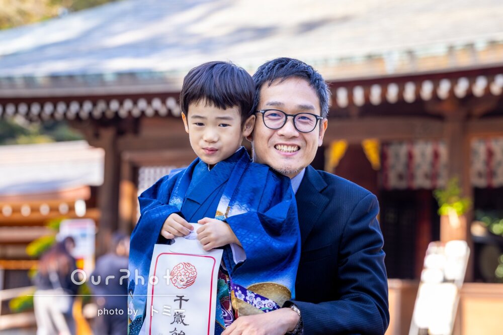 この度は息子の七五三に際して神社でのロケーションフォトを引き受けてくださり、ありがとうございました。5歳と2歳を連れてバタバタの七五三でしたが、最高の一瞬を切り取った素敵な写真を沢山撮影していただき、本当に感謝申し上げます。撮影用の小道具を色々とご用意くださり子どもたちも楽しく撮影することできました。前回同様撮っていただいたお写真は自宅に飾る予定なので選ぶのが楽しみです。また子どもが成長したタイミングでご依頼させていただければと思います。この度はありがとうございました!