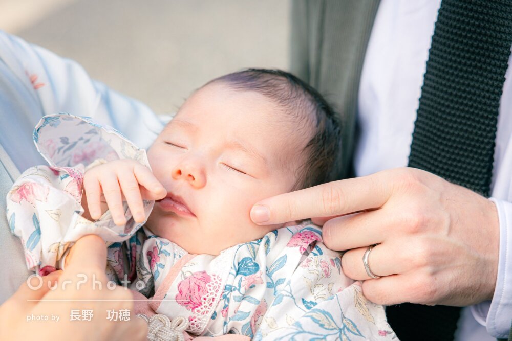 産着の着方など、慣れていないため、撮影時、バタバタしてしまうかと思いましたが、その辺りもしっかりフォローいただき、スムーズに撮影ができました。本当に感謝です!