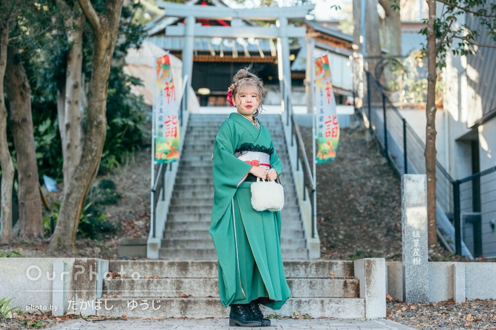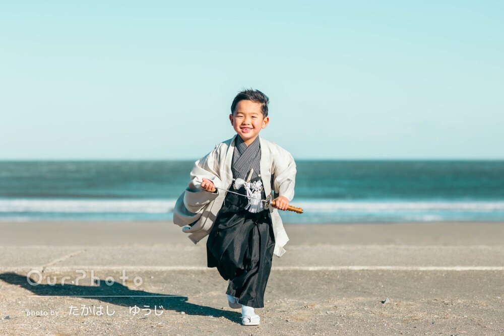 ロケーション場所の撮影にも慣れていらっしゃって、また人の流れを読んで誘導していただき、子供たちとのやり取りも安心して委ねる事ができ、撮影がとてもスムーズで本当にあっという間でした。ご用意していただいた傘や刀を持ったポーズもどのお写真も目がキラキラしていて、自分ではとても撮れない写真の数々に感激です。