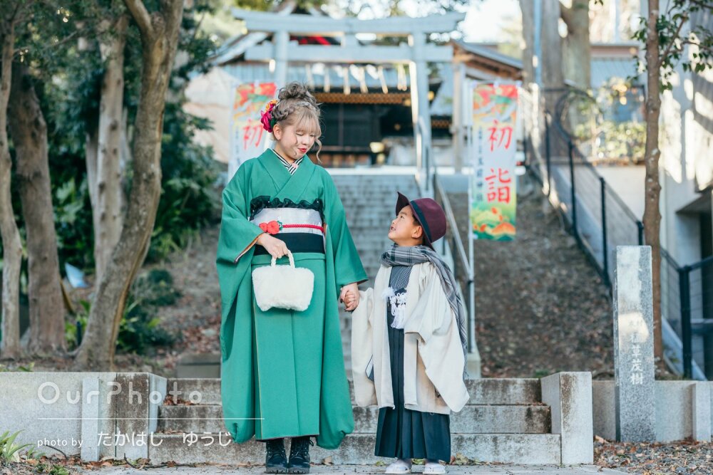 七歳、三歳の七五三撮影をお願いしました。三人きょうだい、祖父母もいる中で、上手く撮影出来るかしらと心配しておりましたが、本番前から丁寧なヒアリングをしていただき、私も構図や背景のリクエストをしやすかったですし、大森さんから色んな写真をたくさん撮りましょう、と快く返信していただき、安心して本番に臨むことが出来ました。
