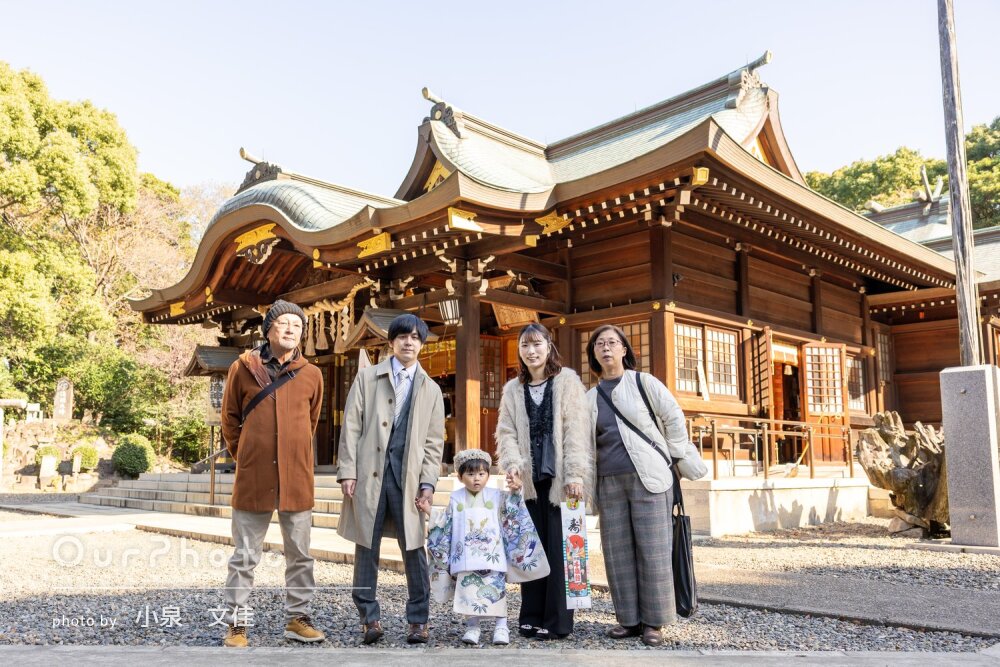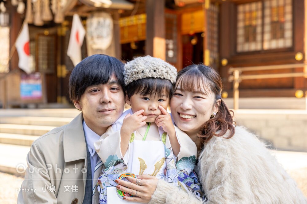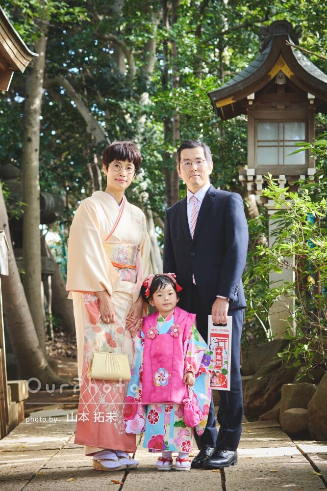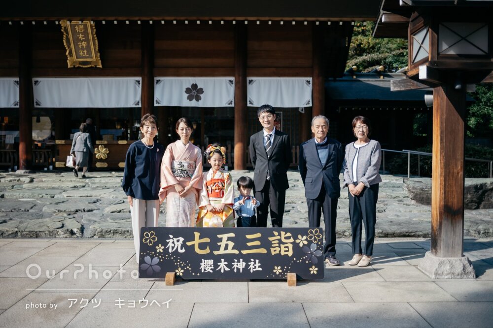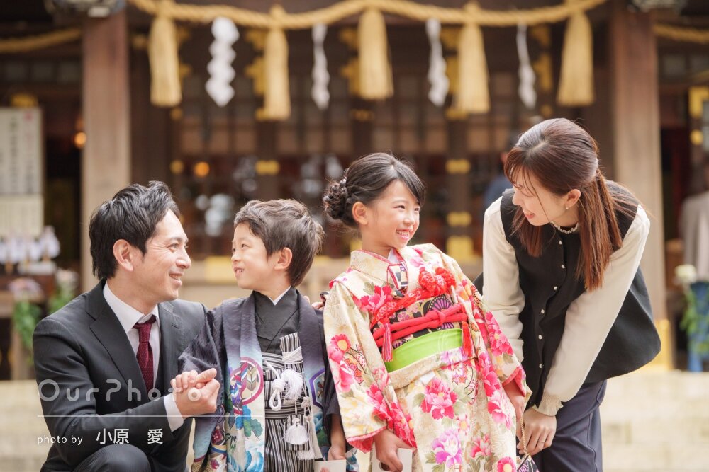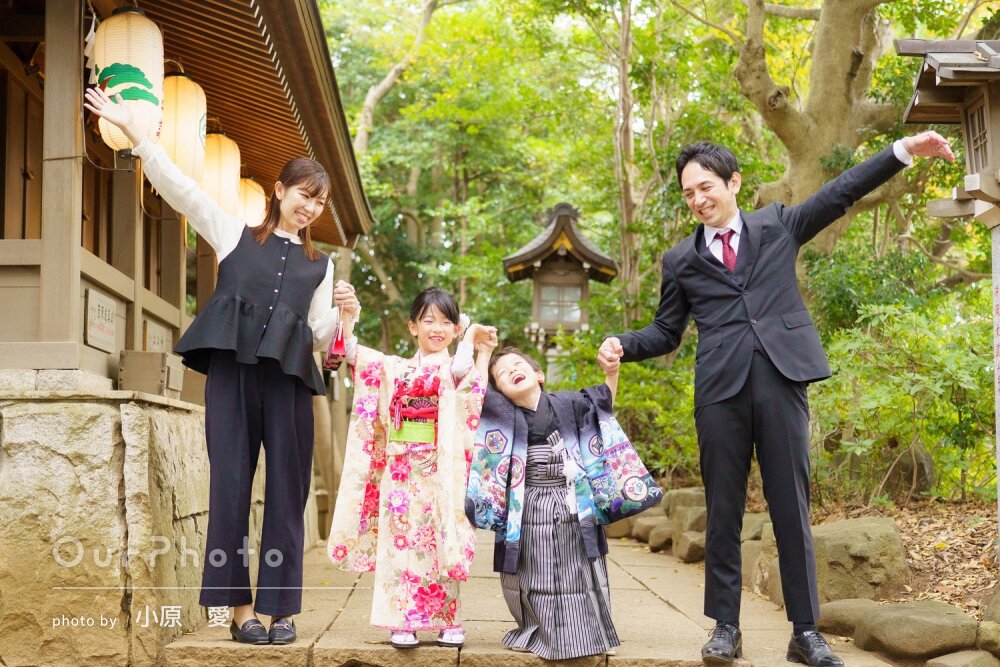七五三シーズンで、平日でしたが神社にも他の参拝の方々がいましたが、空いているエリアからの撮影をご提案いただいたり、持参いただいた道具を貸していただき、とてもスムーズで楽しい撮影となりました。家族全員、思い出に残るお写真となりました☻また機会がございましたら、是非お願いしたいです。本当にありがとうございました!