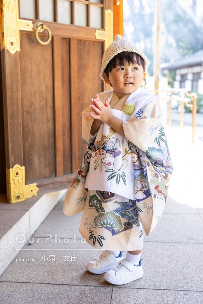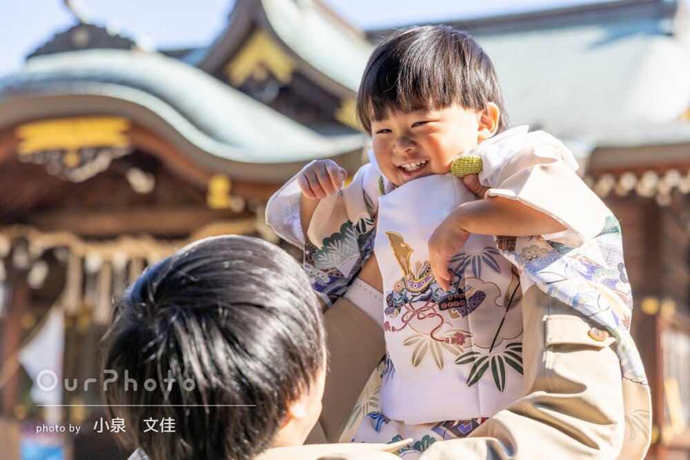 神社で七五三の撮影をお願いしました!もうすぐ3歳になる元気な息子に優しく声をかけて誘導してくださり、撮影に不慣れな私たちへもどうたち振舞えば良いか教えてくださり、とても撮影しやすかったです✨神社なので周囲への配慮もかかさず、様々なポーズやパターンをご提案くださって、いろいろな表情や家族の思い出を形に残すことができて嬉しかったです☺️