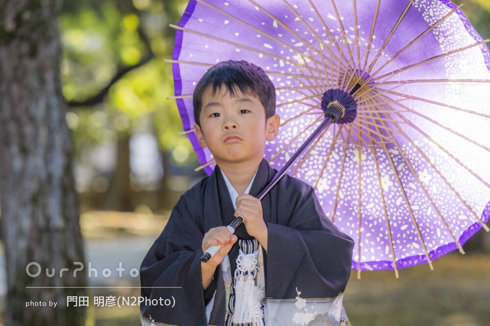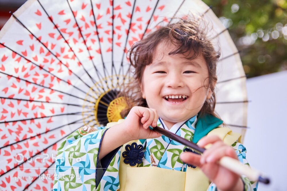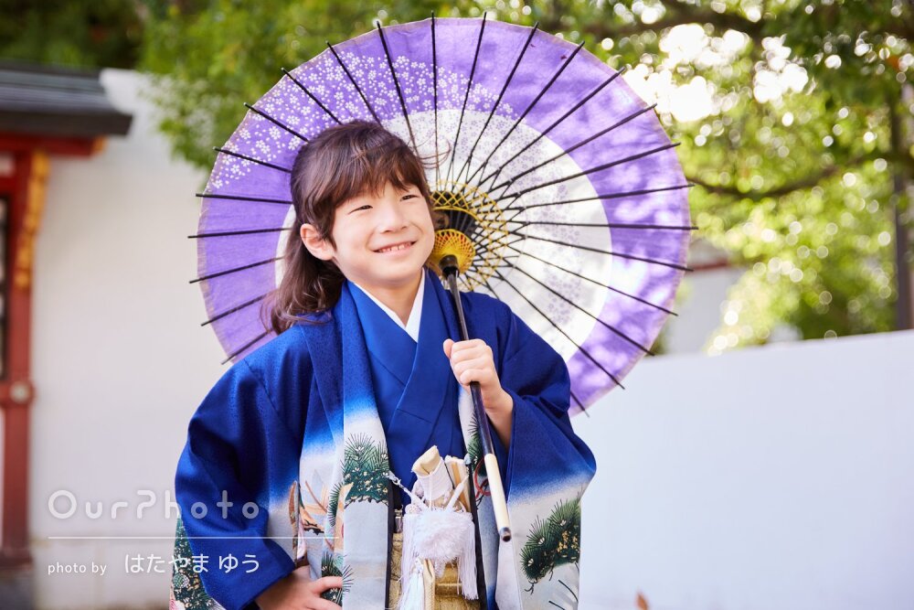 こどもの対応も気分を盛り上げるように撮っていただけて、息子も最初は緊張していましたが、途中から楽しく撮影できていました。和傘も貸していただけて嬉しかったです。