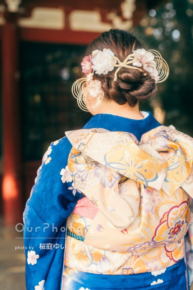 自宅近くの小さい神社だったので写真映えしないかも…と心配していましたが、色んな撮影場所やポーズを提案していただいたので、単調にならず色んなパターンの写真を撮っていただけて嬉しかったです。