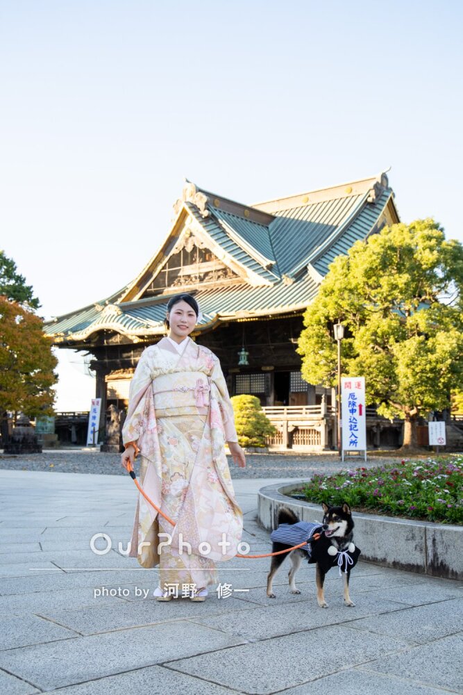 成人式の前撮りとしてご依頼させて頂きました。撮影場所が坂道や足場が悪い所だったのですが、振袖の為歩きづらいのを何度も確認して下さり歩きやすい場所を提示してくれていたり、とても親切で助かりました。また、わんちゃんとの撮影ということもあって少し慌ただしくなってしまいましたが、終始和やかな雰囲気だったので写真にも優しい雰囲気が出ていてとても満足しています。素敵な写真を撮影して下さりありがとうございました。