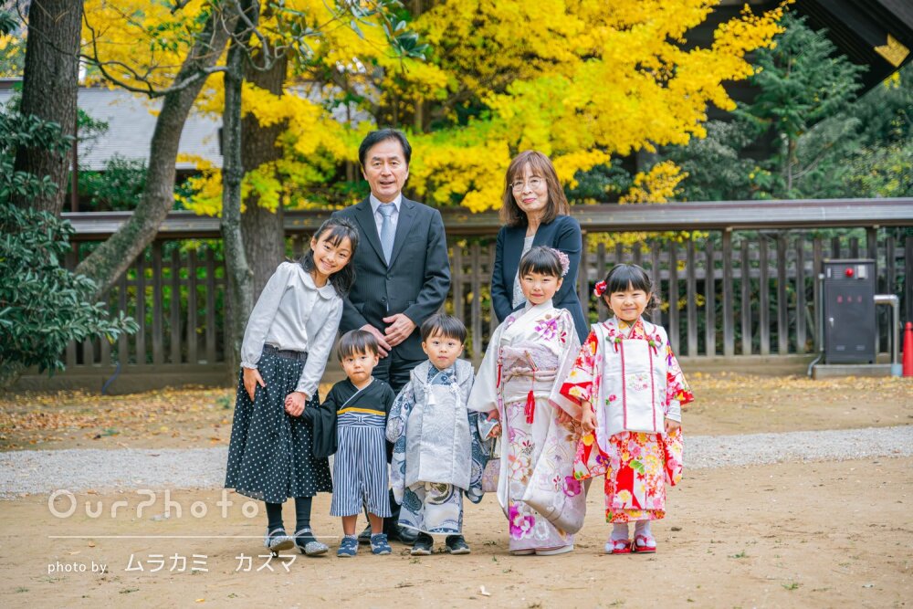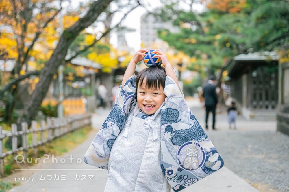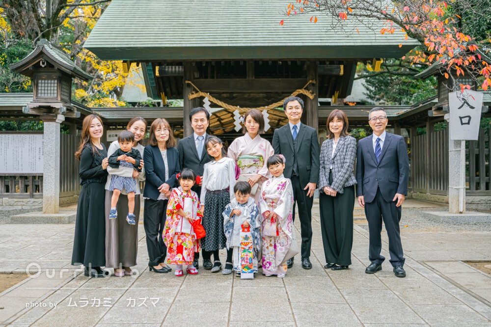 杉森さまに七五三の撮影をお願いするのは2度目でしたので、前回撮影していただいたものと同じアングルの成長バージョンの撮影をご提案いただきました。