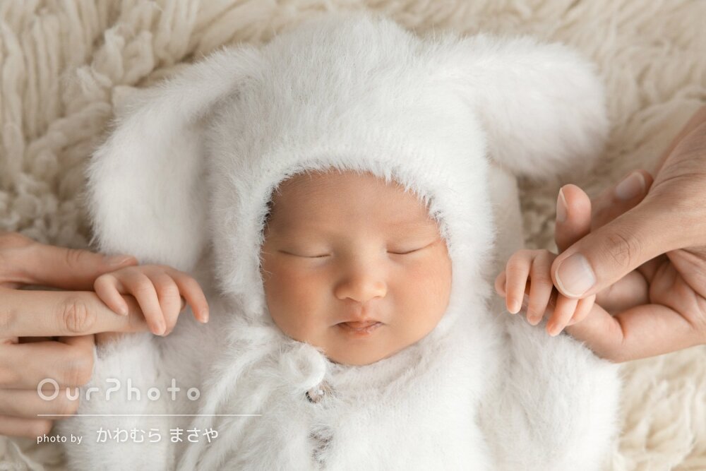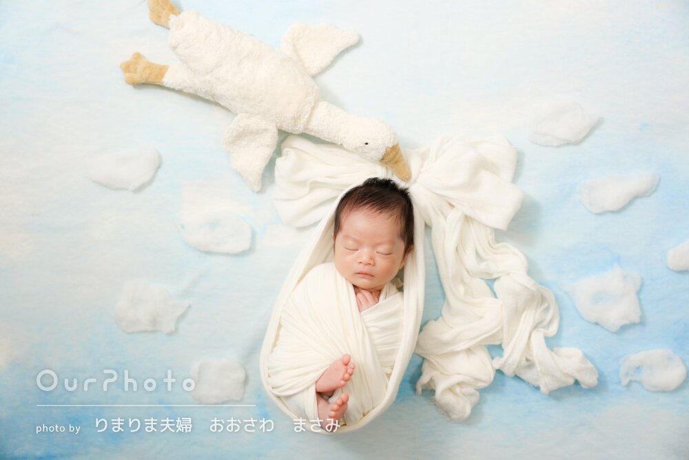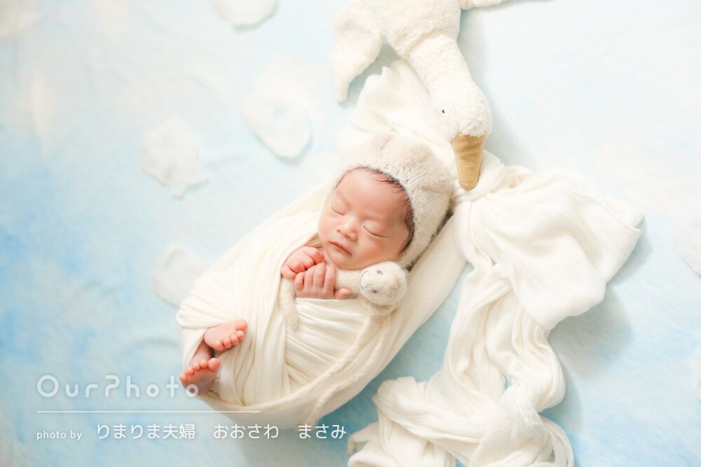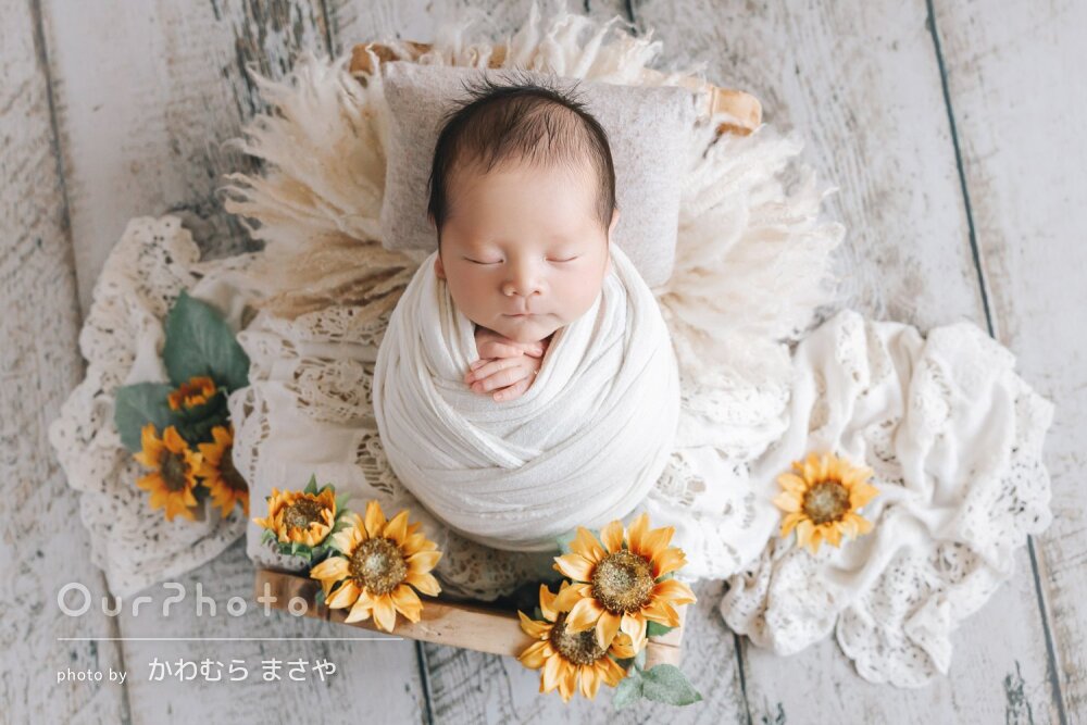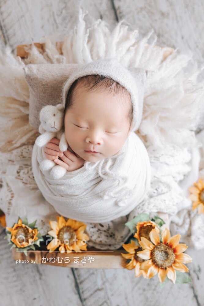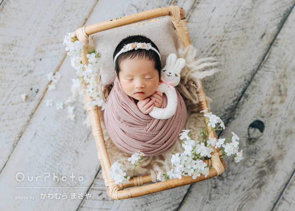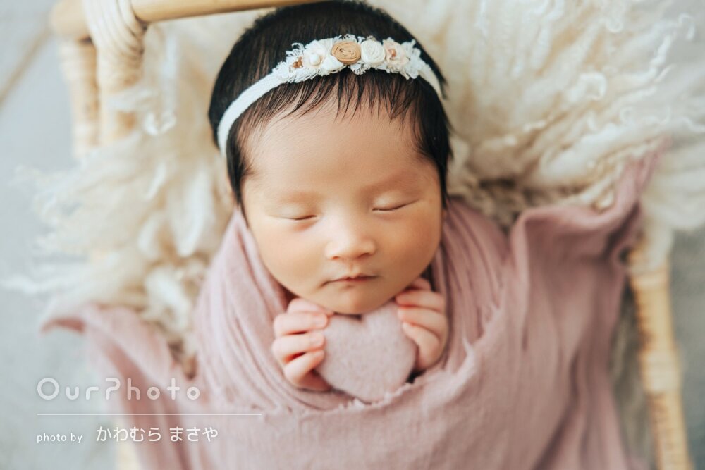 当初、他でニューボーンフォトを撮る予定が赤ちゃんが入院してしまい退院まで1か月弱かかりニューボーンフォトを撮るのに適した時期を逃し対応できるカメラマンさんを探すのに困っていました。