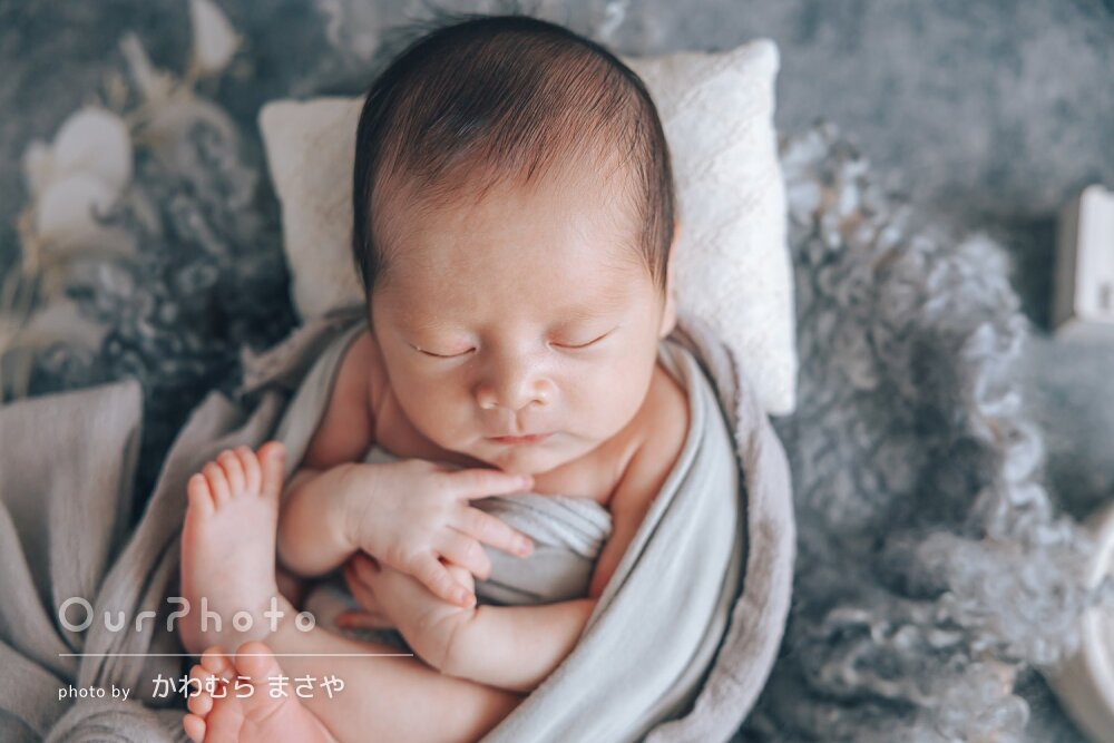 自然な雰囲気のニューボーンフォトを撮っていただくことができ