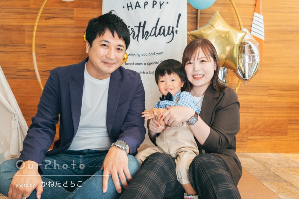 この度は息子の2歳のバースデーフォトを撮影いただきました!事前のやりとりや撮影当日もとてもスムーズにご対応いただき、安心してお願いすることが出来ました!仕上がりの写真もどれも素敵で、家族みんな大満足でした!