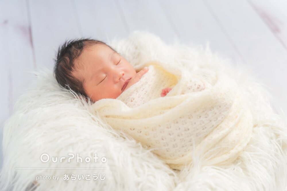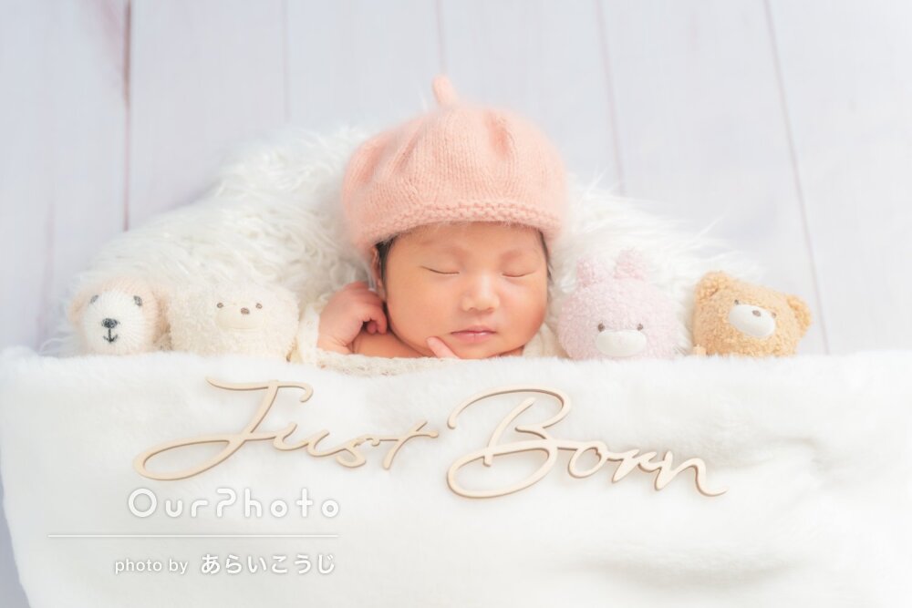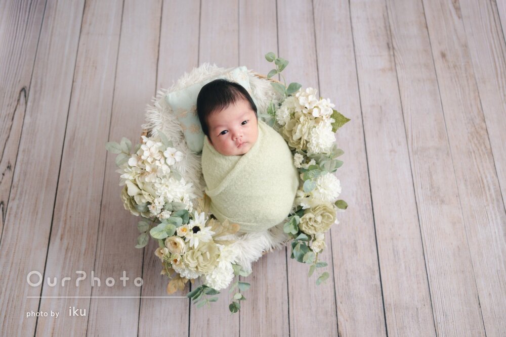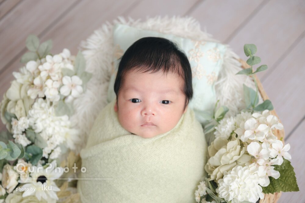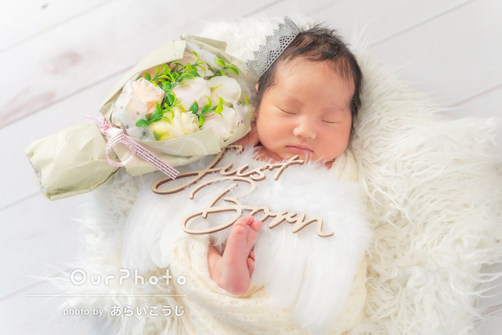 当日赤ちゃんがなかなか深い眠りにつけず時間制限もある中大変だったかと思いますが、可愛い小物を使ったいろんなパターンの可愛い写真を撮っていただきました。ありがとうございました。